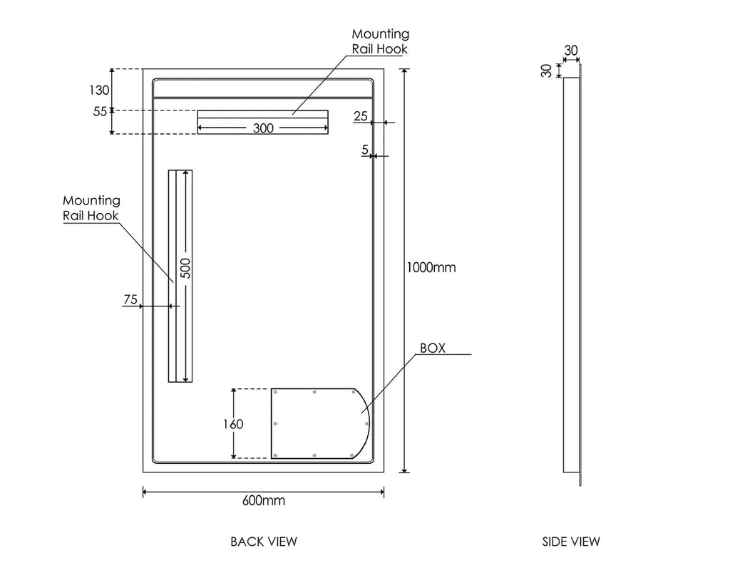 OTTI BOSTON FRAMELESS LED RECTANGULAR MIRROR 600X1000MM