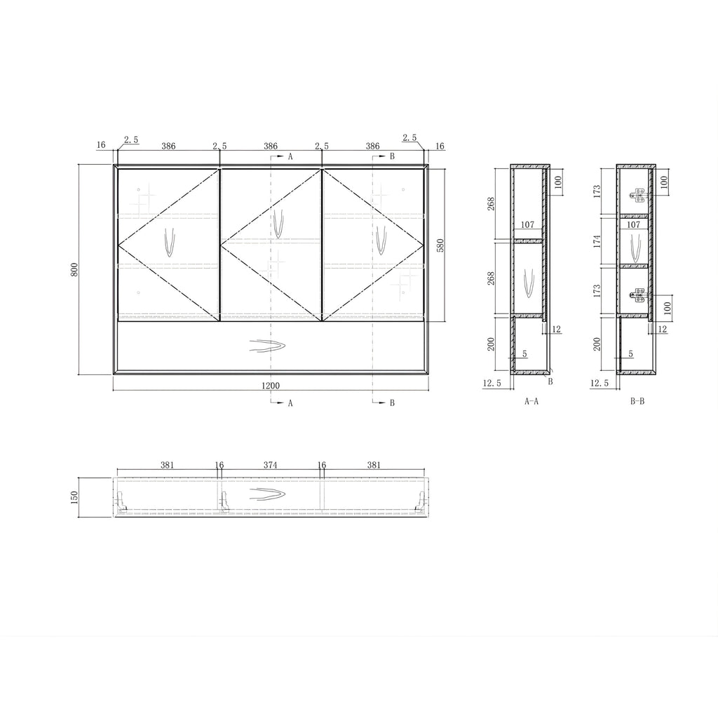 Elevate your bathroom's functionality with the Otti Byron Shaving Cabinet in a striking Black Oak finish. At 1200mm wide, this wall-hung unit provides expansive storage across three soft-closing doors, helping you organise essentials with ease. Crafted from moisture-resistant plywood with copper-free mirrors, it is designed to withstand the humid bathroom environment. Modernise your space with this sleek, finger-pull design that ensures a clean aesthetic without a compromise on practical, high-capacity storage.