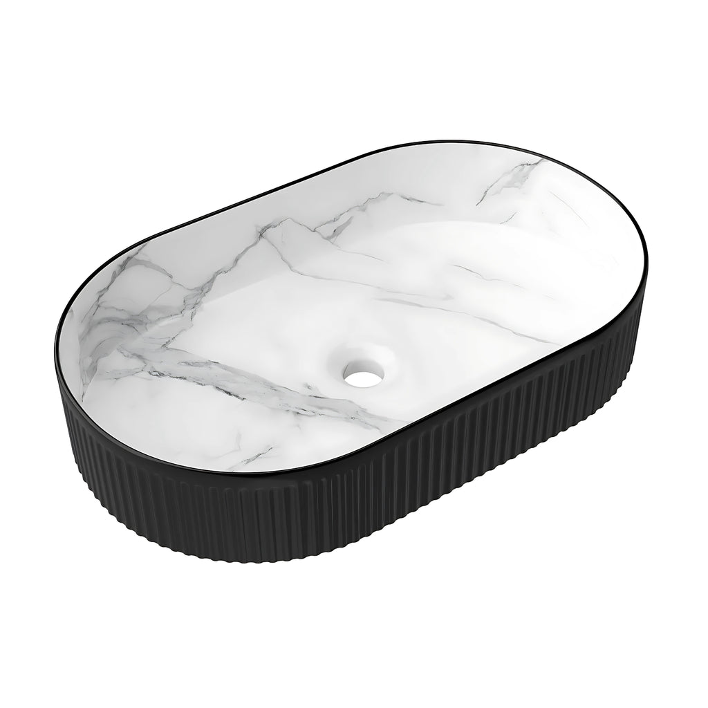 OTTI KENSINGTON FLUTED ABOVE COUNTER BASIN MATTE BLACK AND WHITE 560MM