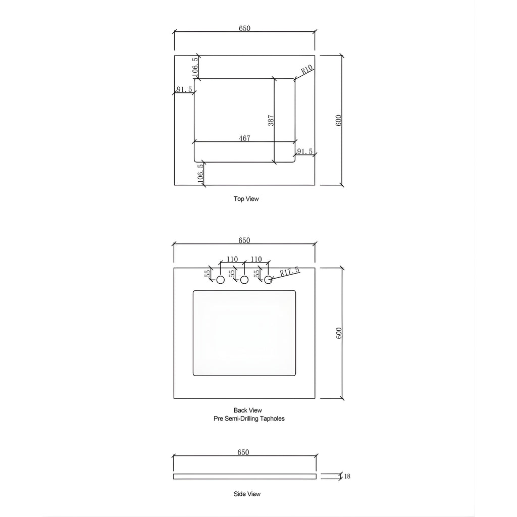 - Stone Top Dimension: 650mm X 600mm X 10mm