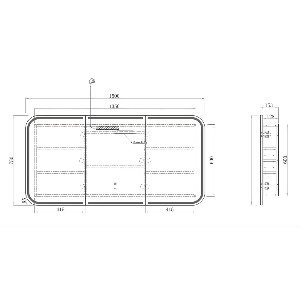 - Cabinet Dimensions: 1350mm X 600mm X 128mm