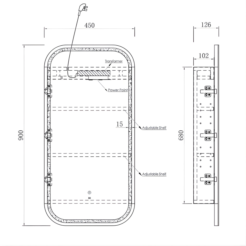 - Cabinet Dimensions: 680mm X 450mm X 102mm