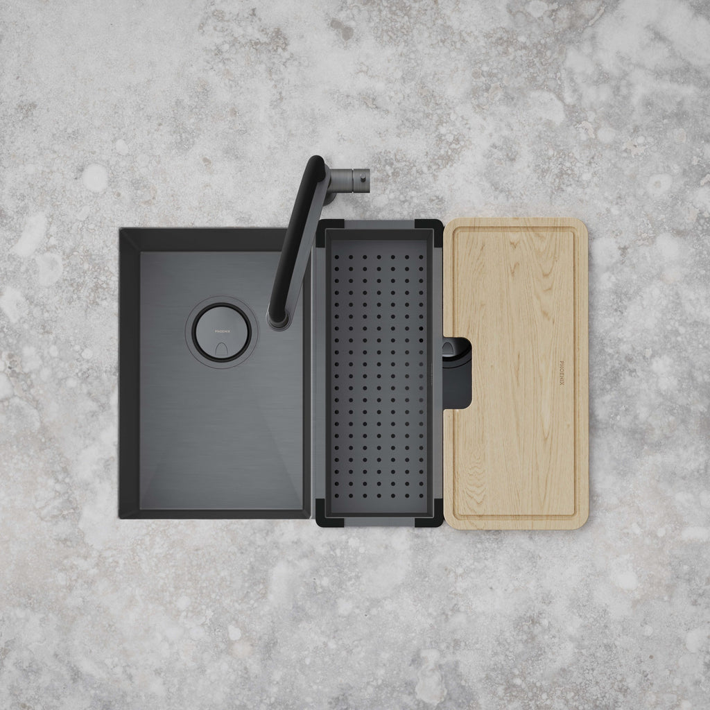 The Phoenix Blix Lead Free Flexible Hose Sink Mixer 447mm in Brushed Carbon delivers bold style and ultimate functionality for modern kitchens and laundries. Its 447mm height and flexible pull-down hose offer superior reach and control for cleaning and rinsing. Finished in striking Brushed Carbon and crafted from lead-free materials, it ensures safe, long-lasting performance. Backed by a 15-year cartridge warranty, 7-year product or parts warranty, and 1-year labour warranty for both domestic and commercial applications.