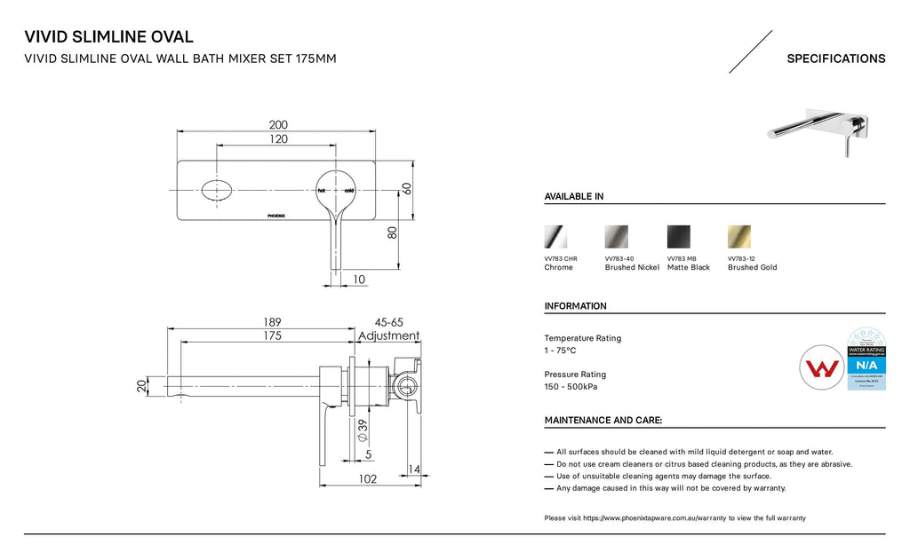 - Click here for warranty applicable to all Phoenix Tapware products purchased from Austpek Bathrooms.