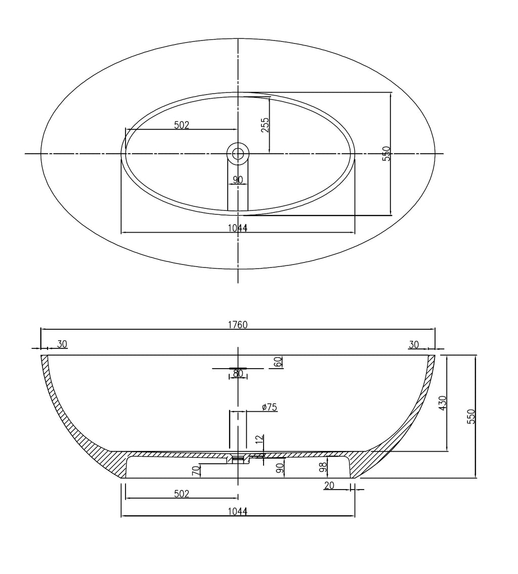 PIETRA BIANCA COCO FREESTANDING STONE BATHTUB WITH CUSTOM COLOURS 1760MM