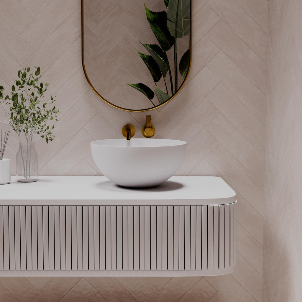 Pietra Bianca Summer above counter stone basin delivers refined bathroom elegance with a smooth white matte finish. Measuring 400mm x 160mm, this handcrafted composite cast stone basin suits contemporary vanities and designer bathrooms. Non-overflow design with optional pop-up waste. Eco-friendly, non-porous material ensures durability and easy cleaning. Made to Order 12-14 Week ETA - Contact for Potential Available or Incoming Stock. Custom Dulux colours available. Ideal for residential and commercial projects requiring premium bathroom basins