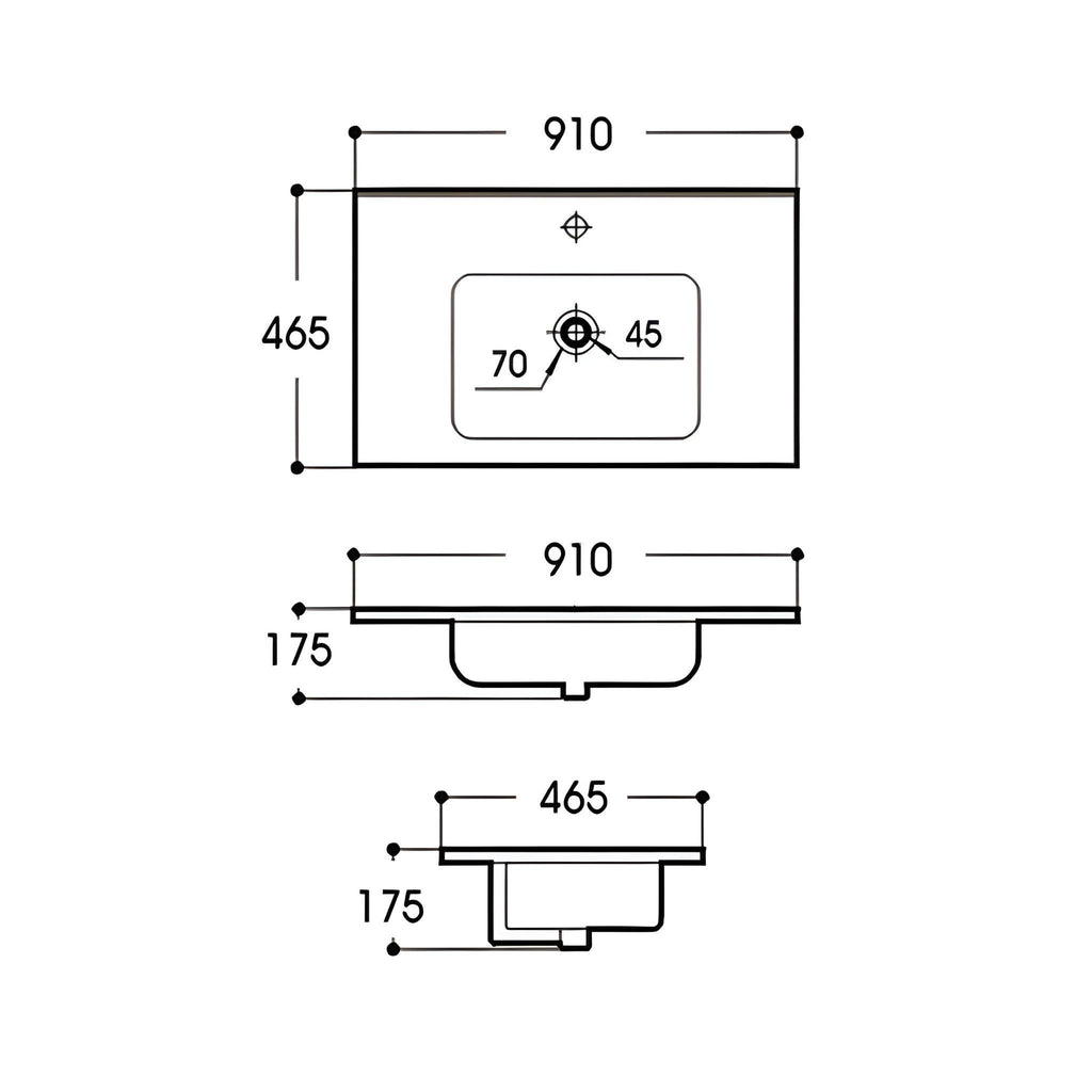 POSEDION OLIVIA GLOSS WHITE SINGLE BOWL CERAMIC VANITY TOP (AVAILABLE IN 610MM, 760MM, 910MM AND 1210MM)