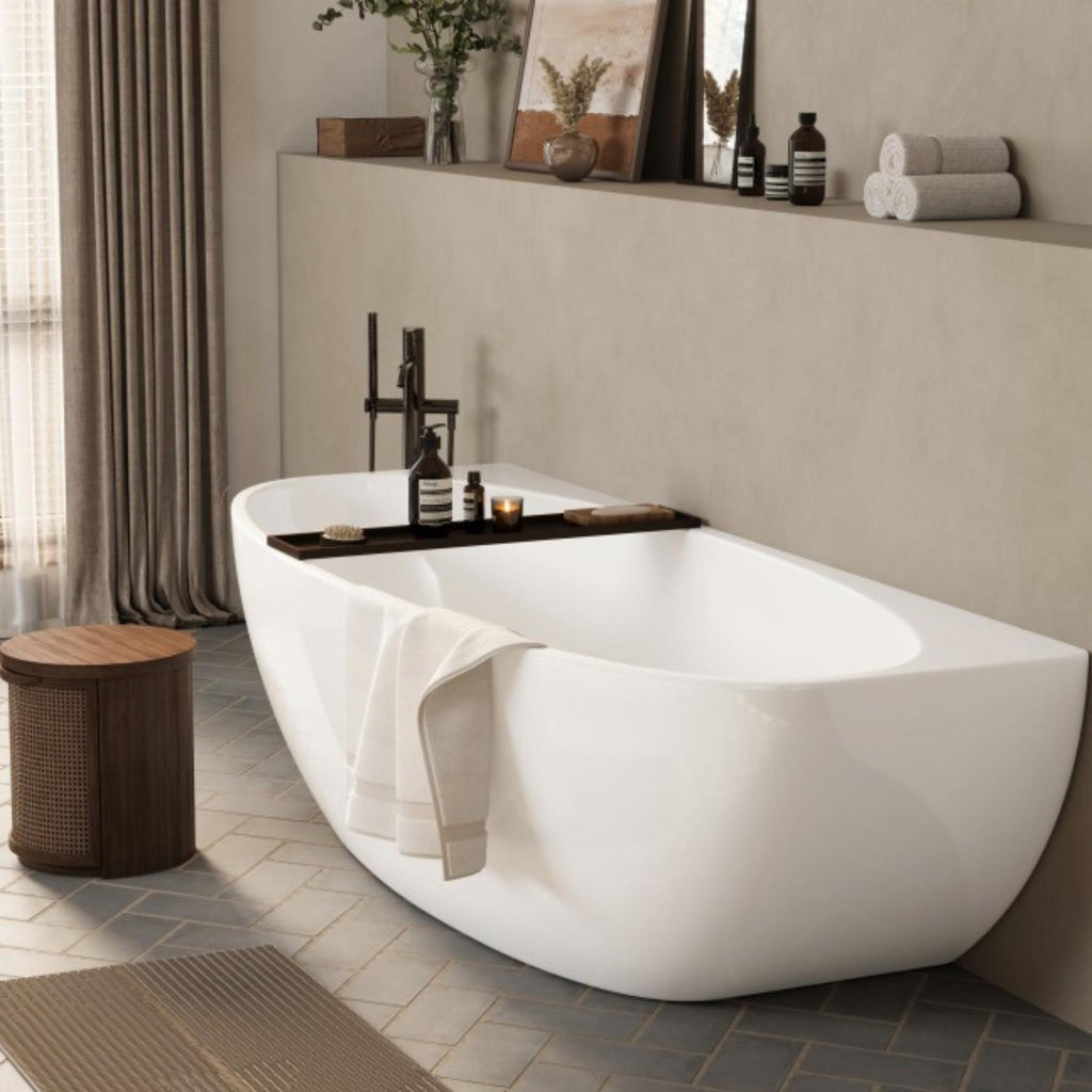 The Poseidon Aria Back to Wall Bathtub in Gloss White offers a sleek and modern design, perfect for contemporary bathrooms. Available in 1500mm and 1700mm sizes, it is crafted from premium sanitary-grade acrylic for lasting durability and easy maintenance. Its ergonomic shape ensures comfort while maximizing space efficiency. Backed by a 5-year residential and 3-year commercial warranty on the bath shell, the Aria combines elegance, quality, and functionality for a luxurious bathing experience.