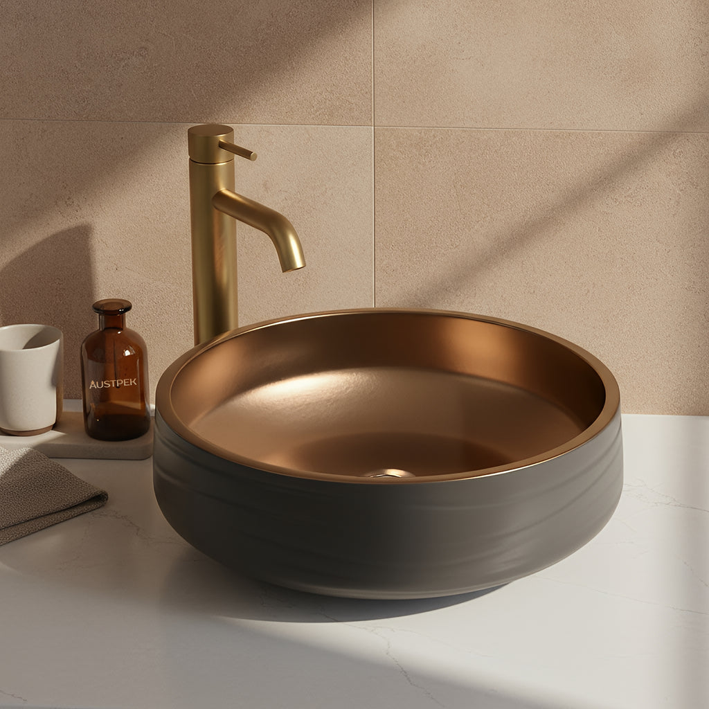 Elevate your bathroom aesthetic with the Poseidon Art Basin, a stunning fusion of matte black and copper in a perfect 410mm size. This collection epitomizes timeless design and meticulous craftsmanship. Explore special features tailored for enhanced functionality, ensuring a harmonious blend of style and usability. With a commitment to enduring quality, Poseidon offers a 10-year warranty, covering replacement parts or the complete product. Redefine your space with Poseidon where sophistication meets durability, creating a bathroom sanctuary that captivates and endures.
