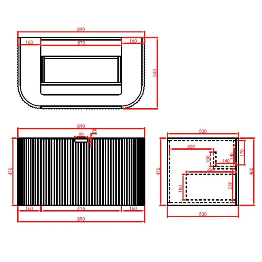 CETO AVALON MATTE BLACK 900MM SINGLE BOWL WALL HUNG VANITY