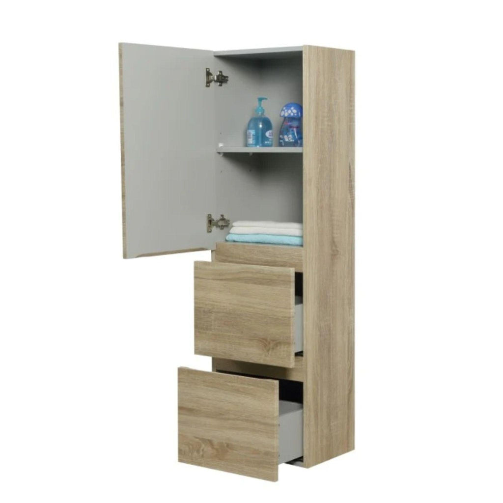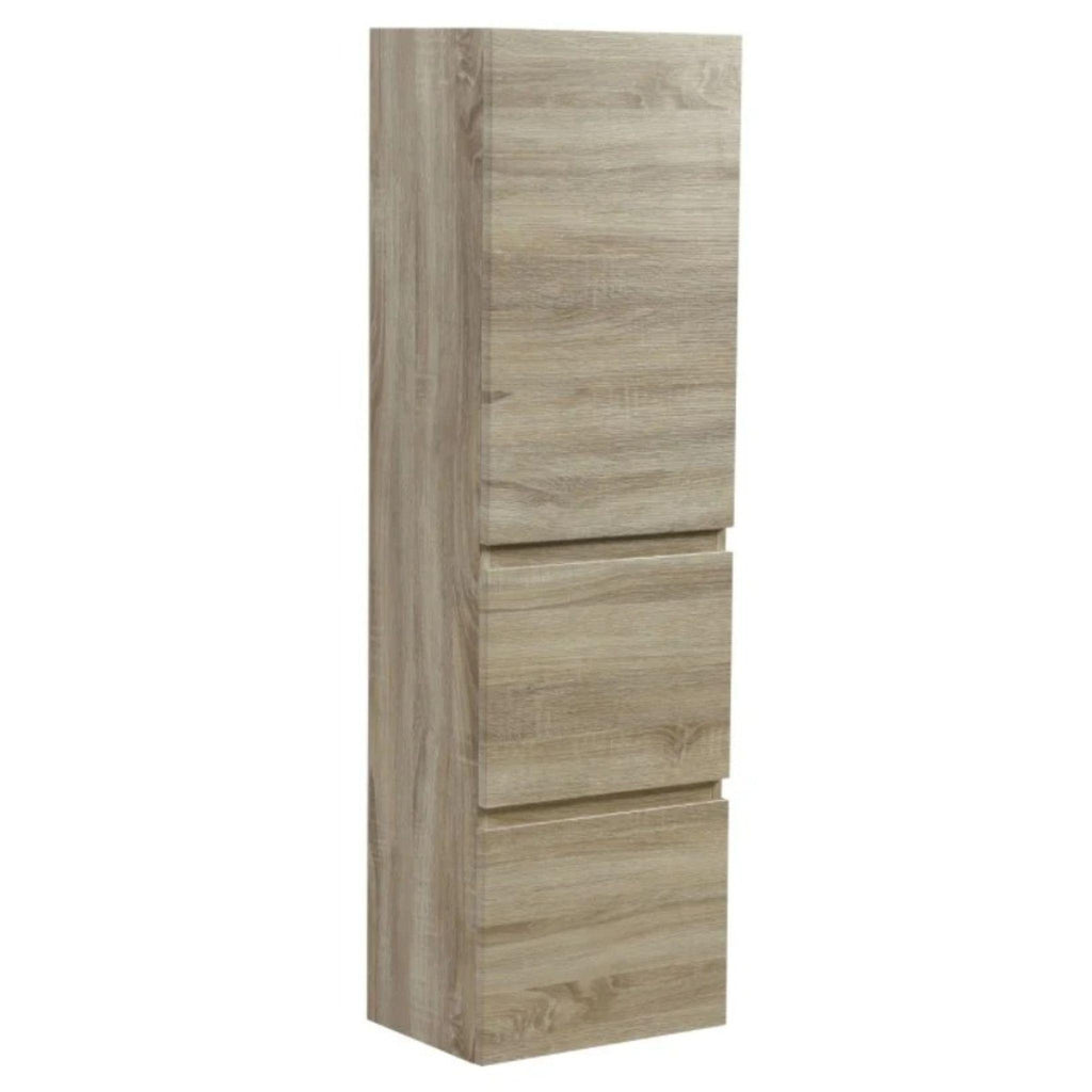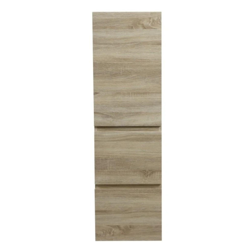 Introducing the Poseidon Wall Hung Tall Boy, a sleek and sophisticated storage solution for your bathroom. Finished in White Oak PVC vacuum filmed on MDF board, this 1350mm tall cabinet epitomizes modern elegance. Its durable PVC construction ensures longevity. This Wall Hung Tall Boy features a single door and double soft-closing drawers, providing ample and efficient storage space. It comes with a generous 10-year warranty on replacement parts or the complete product for the PVC cabinet and 1-year labor.