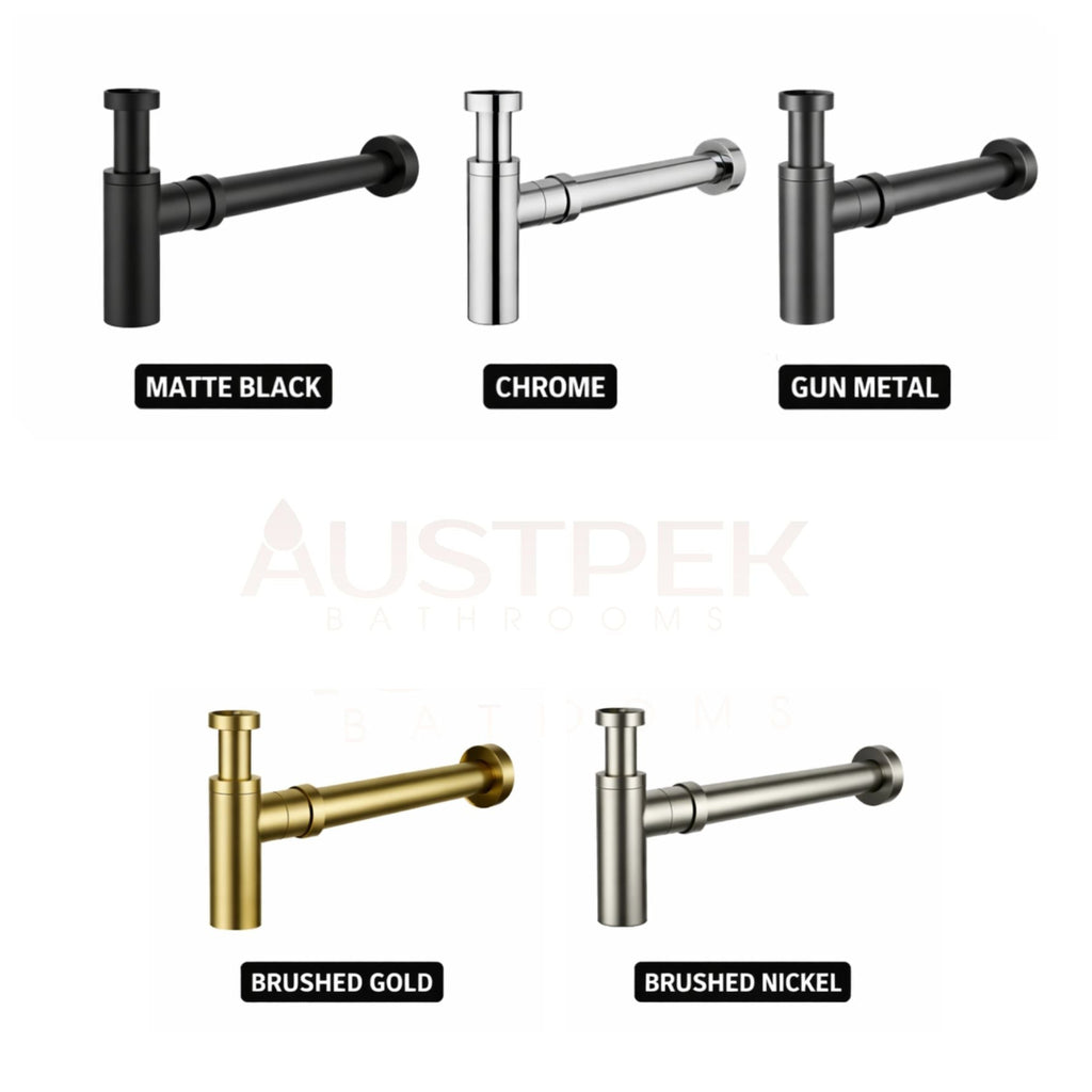 The Poseidon Brass Bottle Trap 40mm Round Gun Metal adds a luxurious finishing touch to exposed basin plumbing, enhancing both style and functionality. Crafted from premium brass with an elegant Gun Metal finish, it offers excellent durability, corrosion resistance, and long-term reliability. Ideal for wall-hung and above-counter basins, it provides a clean, streamlined look while ensuring efficient waste flow. Backed by a 1-year replacement warranty for parts or complete product, this bottle trap delivers dependable performance and refined visual appeal.