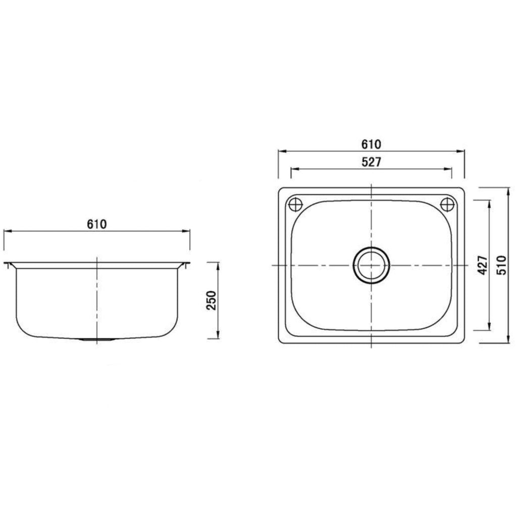 POSEIDON DROP-IN SINGLE BOWL LAUNDRY SINK STAINLESS STEEL 610MM
