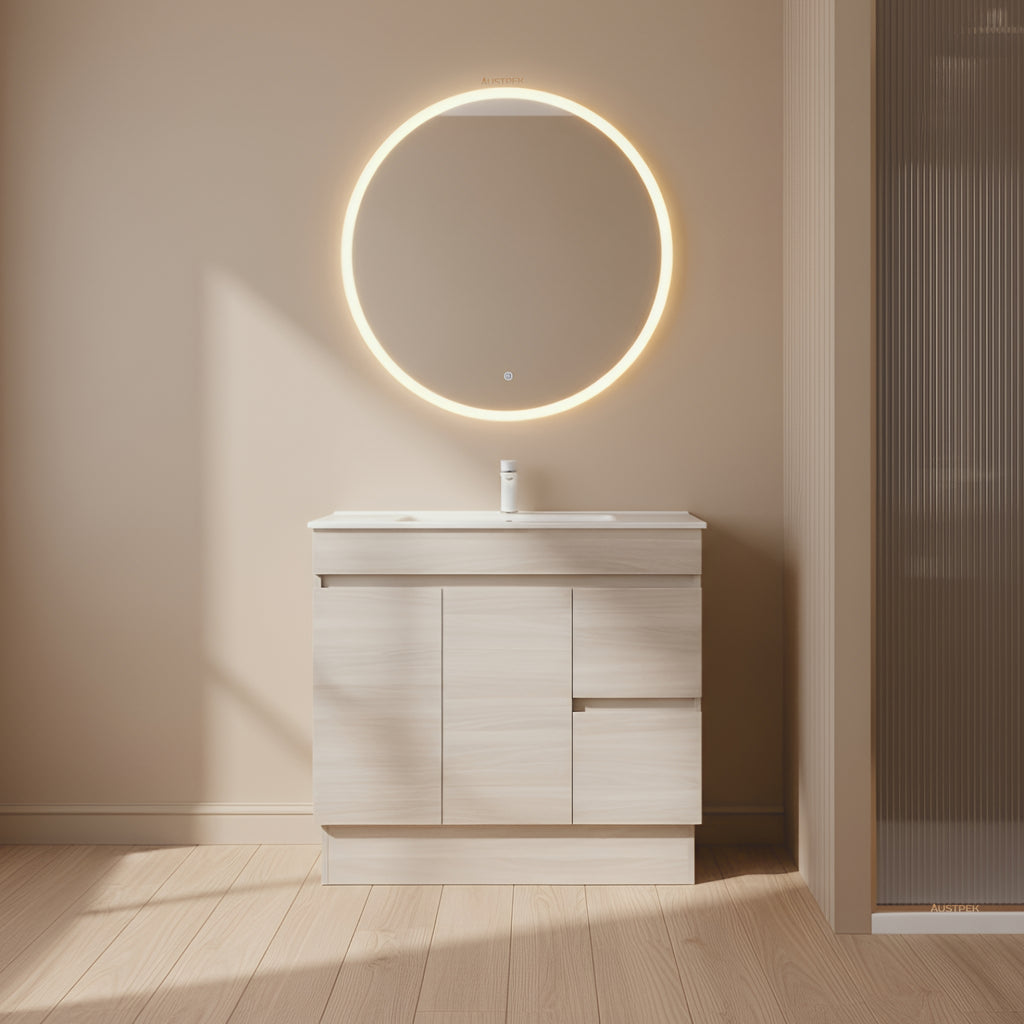 POSEIDON EVIE OAK 900MM SINGLE BOWL FLOOR STANDING VANITY (AVAILABLE IN LEFT HAND DRAWER AND RIGHT HAND DRAWER)