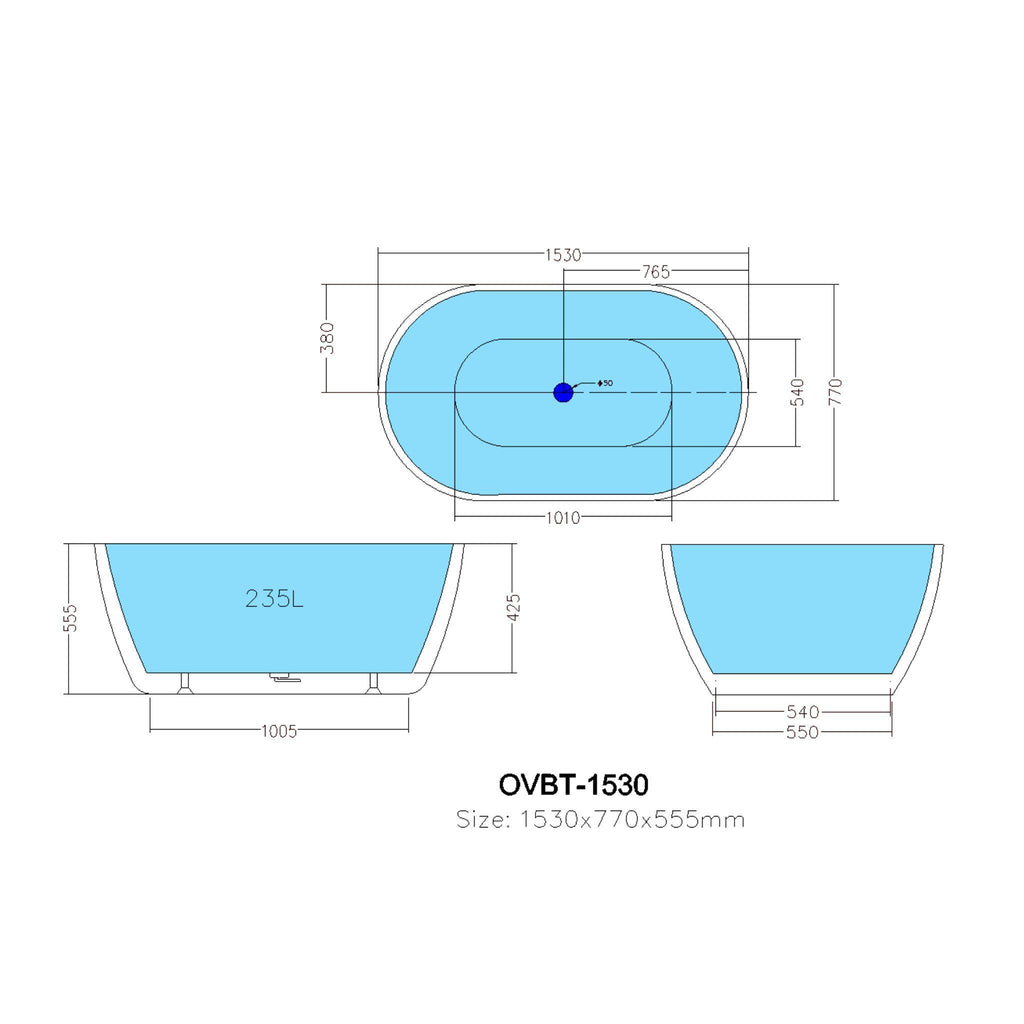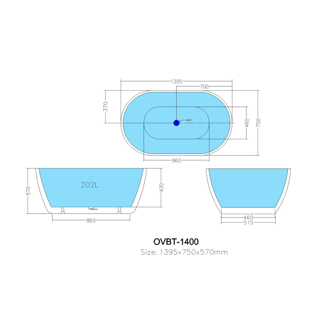 POSEIDON OLIVIA FREE STANDING BATH OVERFLOW GLOSS WHITE (AVAILABLE IN 1400MM, 1530MM AND 1700MM)
