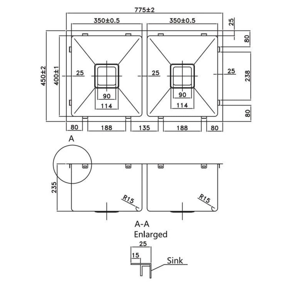 POSEIDON HANDMADE STAINLESS STEEL KITCHEN SINK 775MM