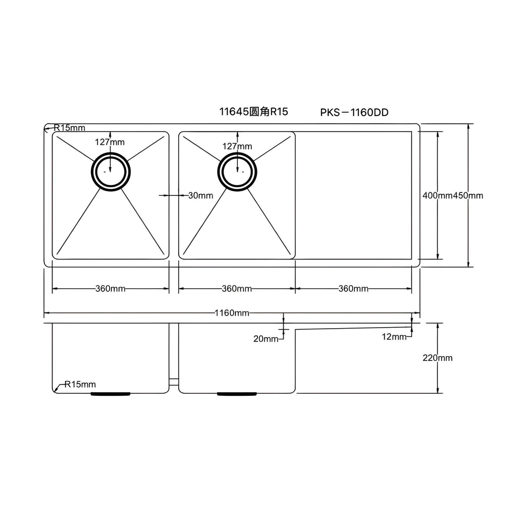 POSEIDON HANDMADE KITCHEN SINK STAINLESS STEEL 1160MM
