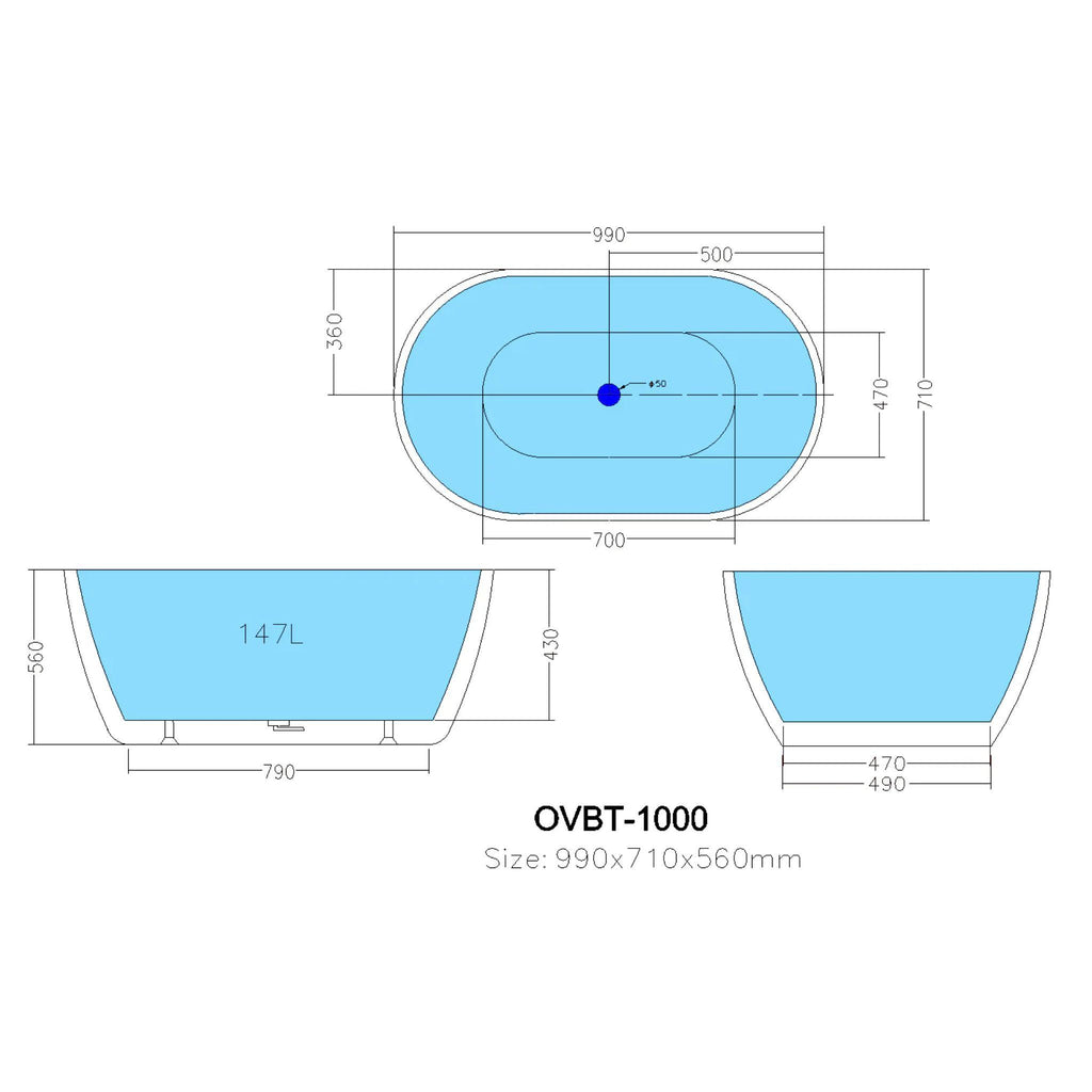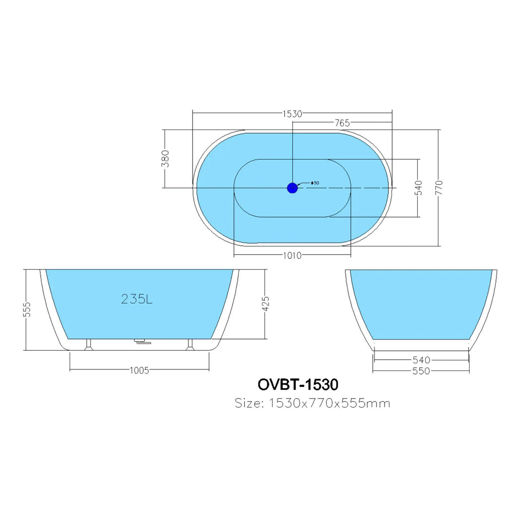 POSEIDON OLIVIA FREE STANDING BATHTUB GLOSS WHITE (AVAILABLE IN 1000MM, 1300MM, 1400MM, 1530MM AND 1690MM)