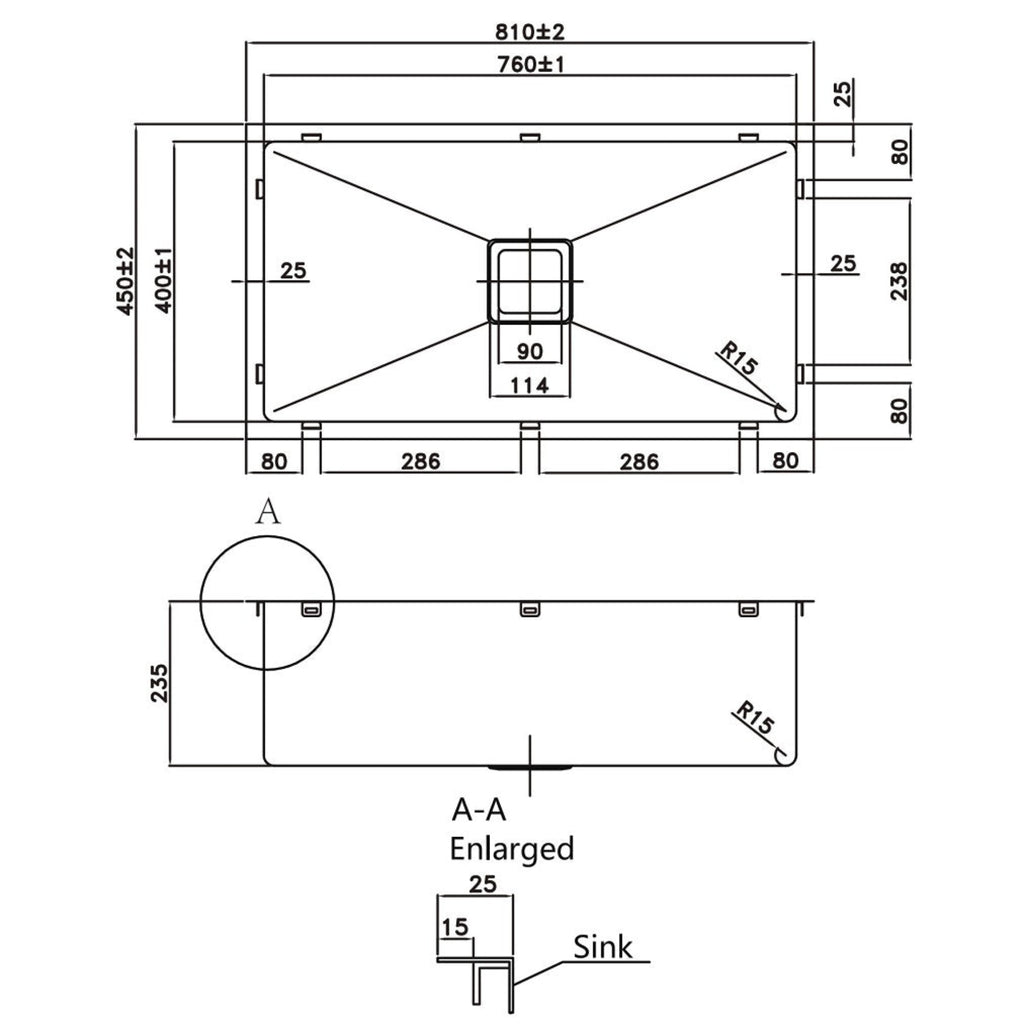 POSEIDON HANDMADE STAINLESS STEEL KITCHEN SINK 810MM