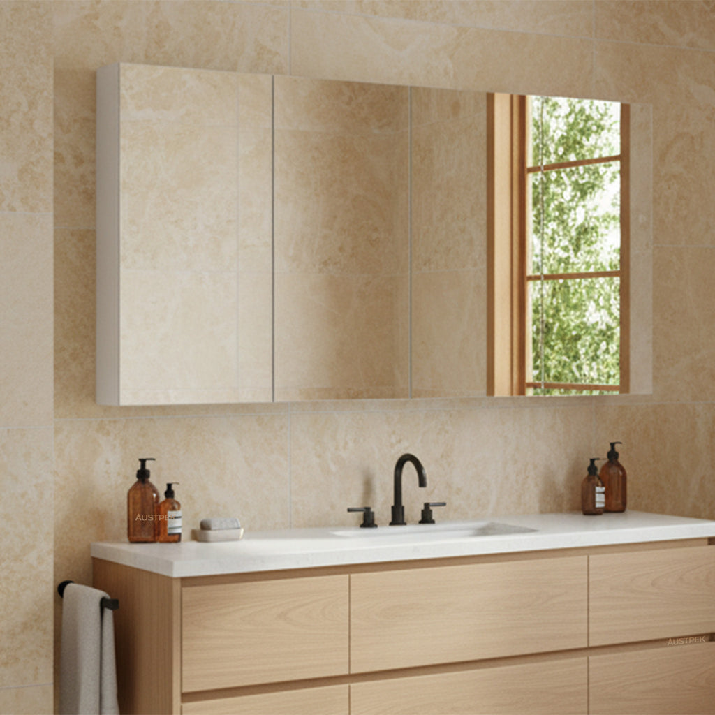 Shop the Poseidon Polar Gloss White Mirror Cabinet 1500x750mm – a sleek, space-saving solution for modern bathrooms. Featuring a high-gloss finish and mirrored door, it combines style with functionality. Perfect for storing essentials while enhancing your vanity area. Backed by a 1-year replacement and labour warranty for both domestic and commercial use. Ideal for small to medium spaces, this mirror cabinet offers quality and convenience. Upgrade your bathroom with this elegant and practical storage piece today.