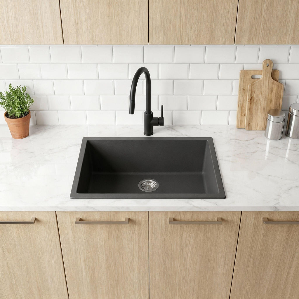 Elevate your bathroom aesthetics with the Poseidon Quartz Undermount Kitchen Sink in Matte Black, measuring 810mm. This collection seamlessly combines contemporary design with functionality, offering a sleek colour choice and adaptable sizing to suit your preferences. Enjoy peace of mind with our exclusive 5-year warranty, ensuring a stress-free replacement if necessary. Poseidon invites you to redefine your bathroom space, where style meets resilience, creating an ambiance that effortlessly melds sophistication and lasting quality. Redefine your bathroom experience with Poseidon's timeless appeal.
