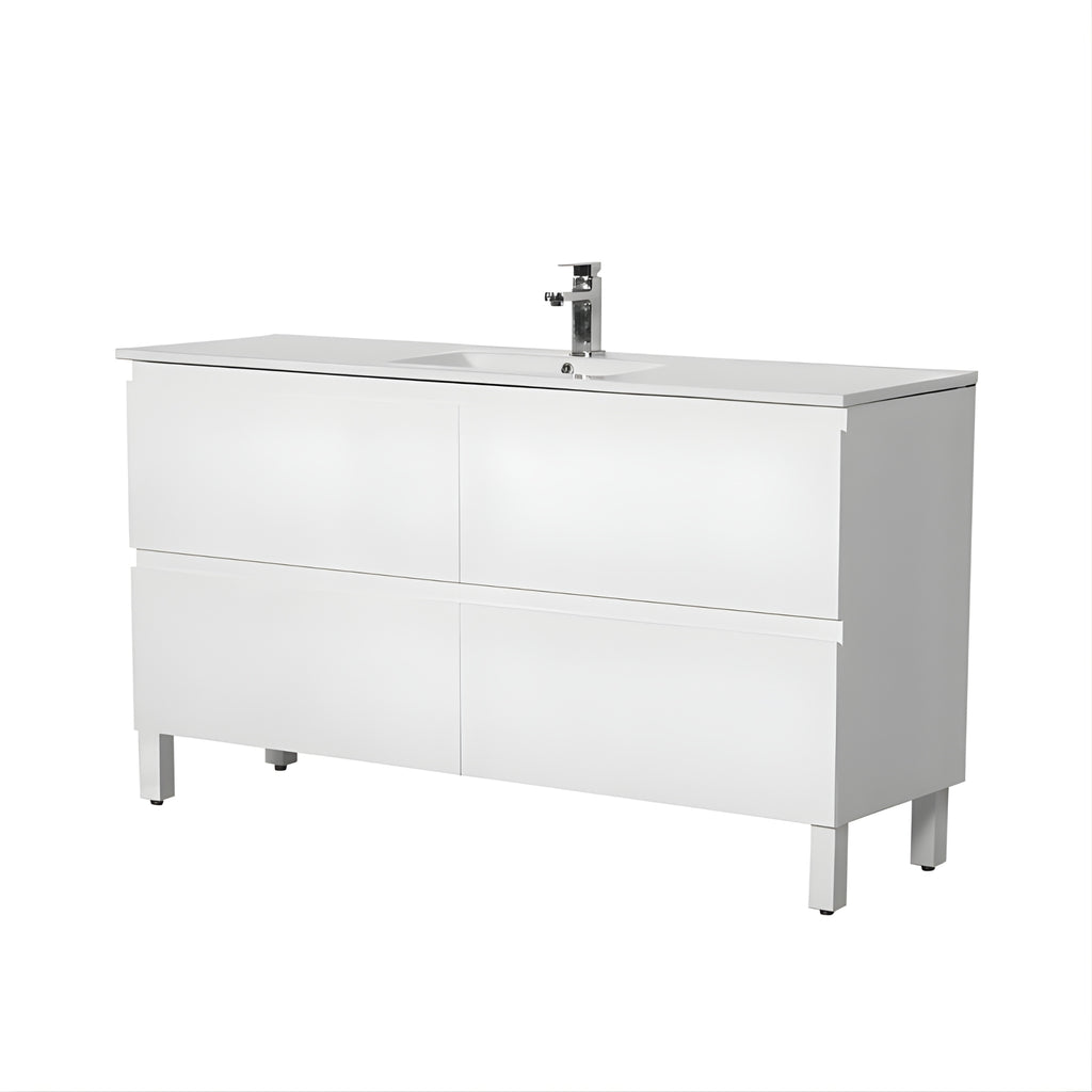 POSEIDON RIVA GLOSS WHITE 1500MM SINGLE BOWL FLOOR STANDING VANITY