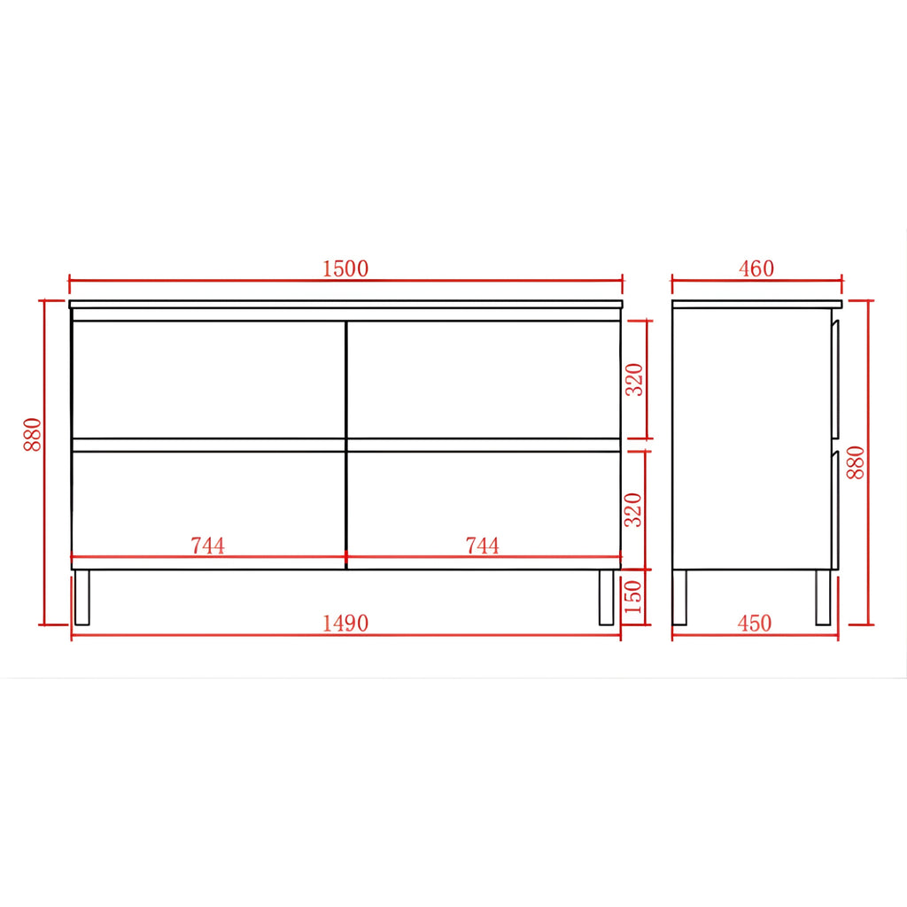 - Drawers: 4 Soft Closing Drawers
