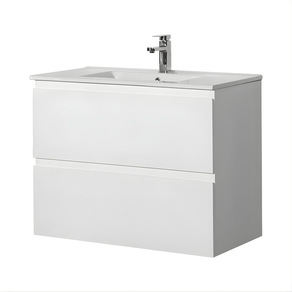 POSEIDON RIVA GLOSS WHITE 900MM SINGLE BOWL WALL HUNG VANITY