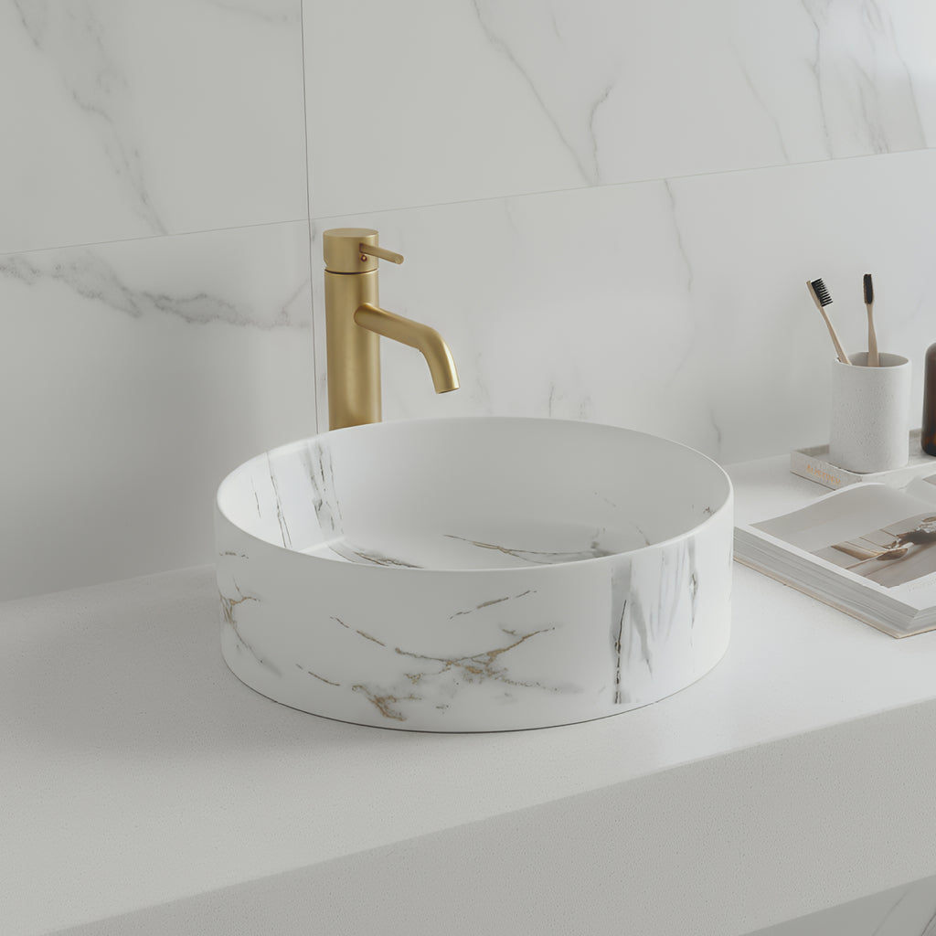 POSEIDON FINE CERAMIC BASIN MATTE WHITE MARBLE 394MM
