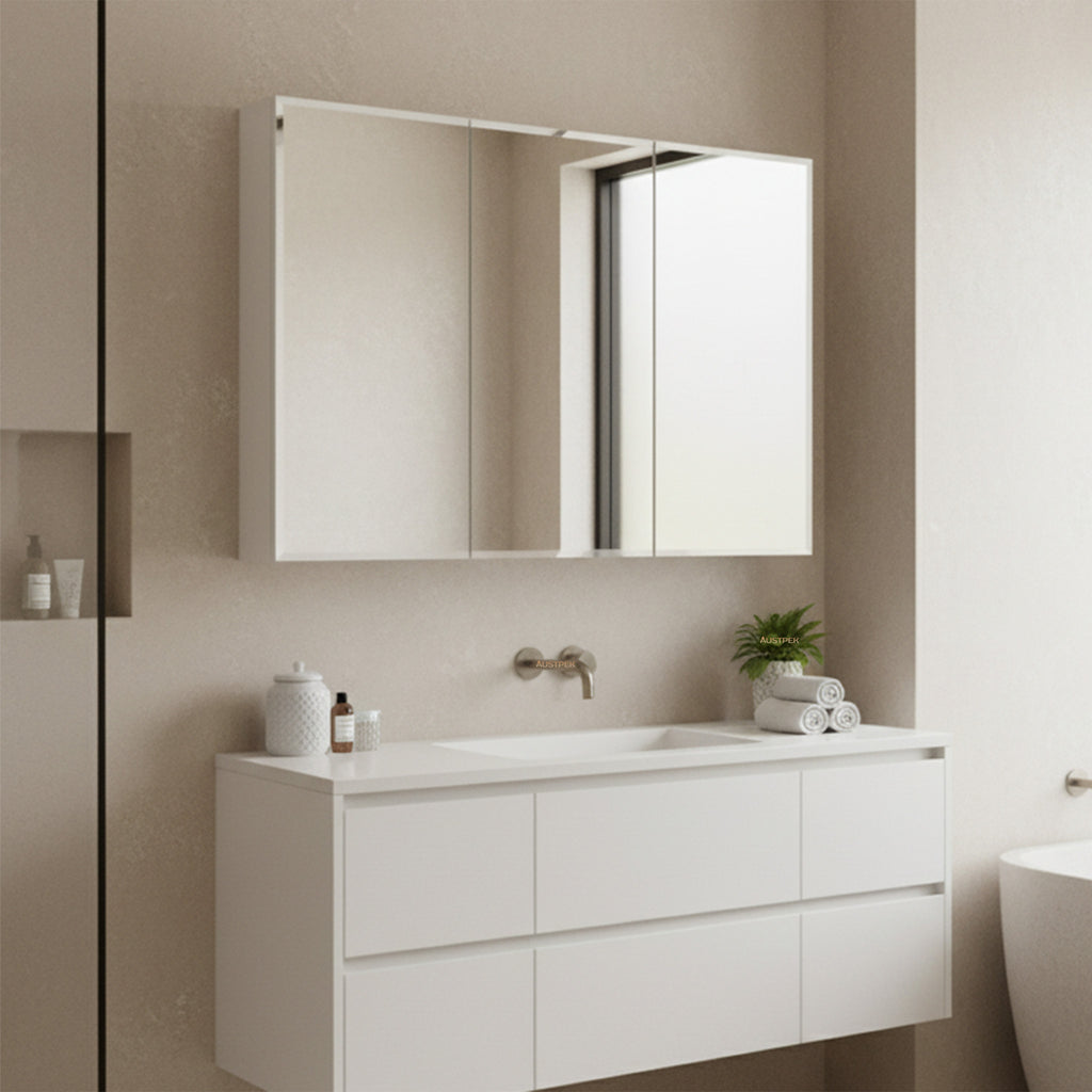 Introducing the Poseidon White Mirror Cabinet at 1200mm, a fusion of style and functionality for your bathroom. With a comprehensive domestic warranty 1 year for replacement parts or complete product and an additional 1 year for labor experience enduring assurance. This cabinet redefines bathroom storage, offering a sophisticated solution. Elevate your space with Poseidon, where design meets reliability, crafting an organized and elegant bathing haven while ensuring lasting quality and peace of mind.