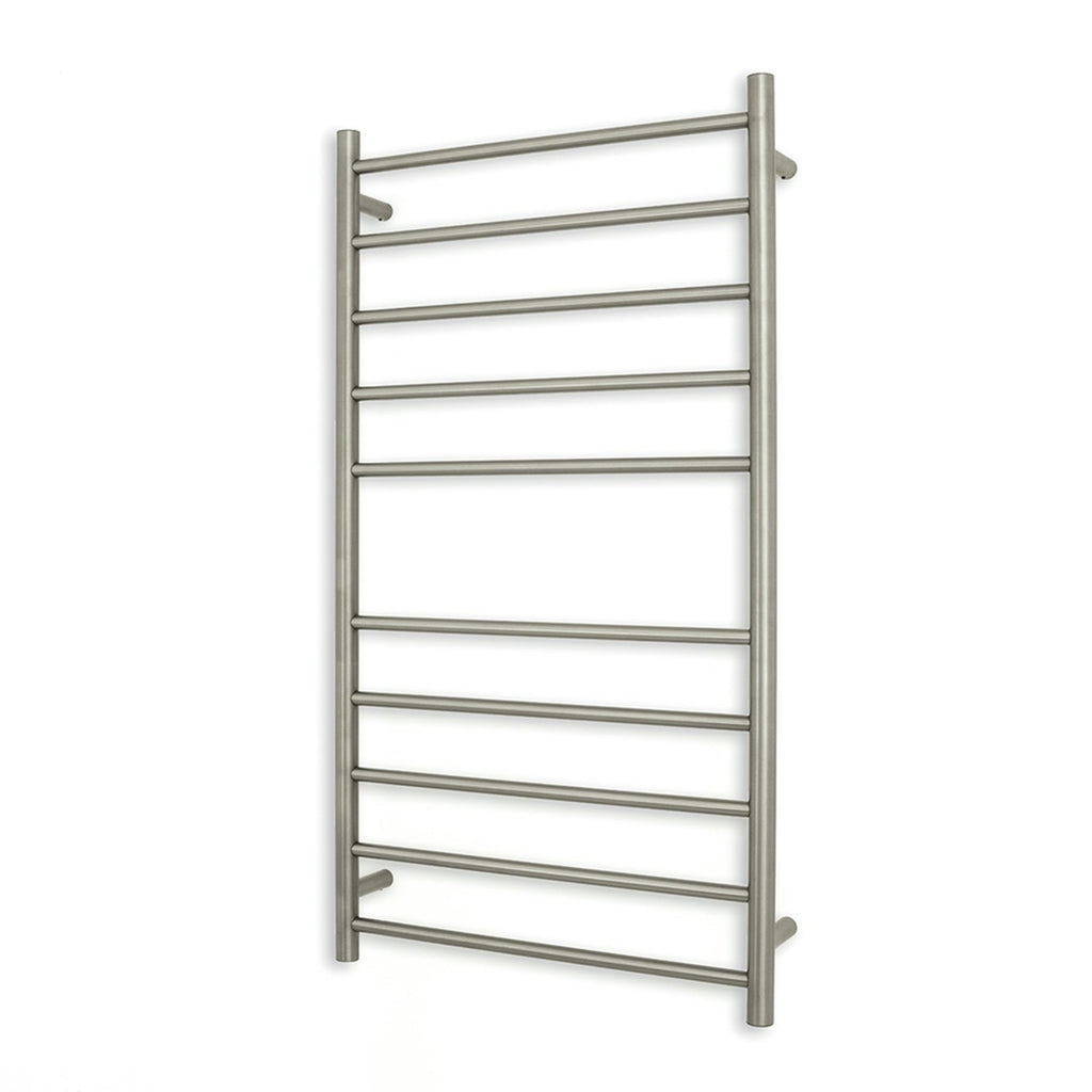 RADIANT HEATING 10-BARS ROUND HEATED TOWEL RAIL COOL BRUSHED NICKEL 600MM
