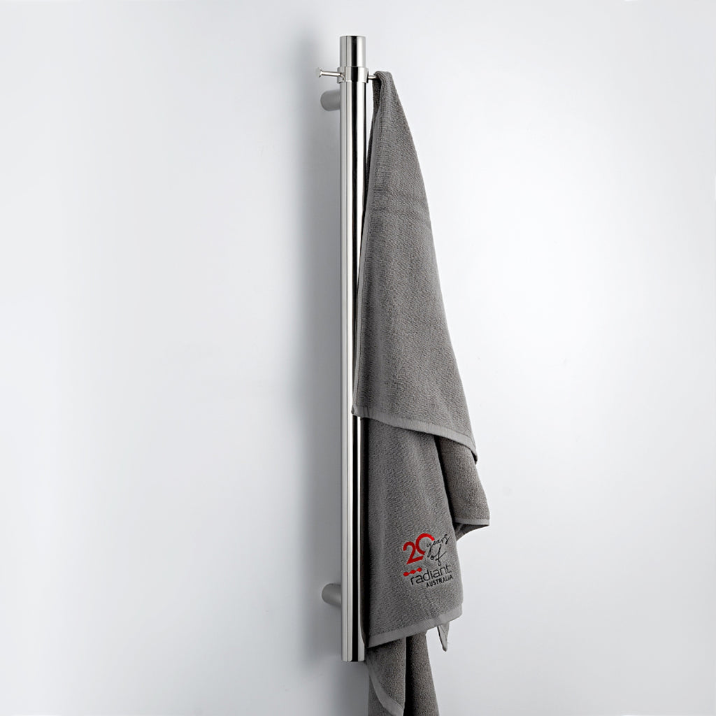 The Radiant Heating Vertical Round Heated Single Towel Rail offers a sleek, contemporary design perfect for modern bathrooms. Crafted from premium 304 grade stainless steel. The hook accessory is sold separately. Available in Brushed Bronze, Brushed Copper, Brushed Gold, Brushed Nickel, Brushed Satin, Champagne, Gun Metal Grey, Light Gold, Matt Black, Matt White, Oil Rubbed Bronze, Polished and Warm Brushed Nickel. Includes a 10-year construction/heating warranty and a 2-year coating warranty.