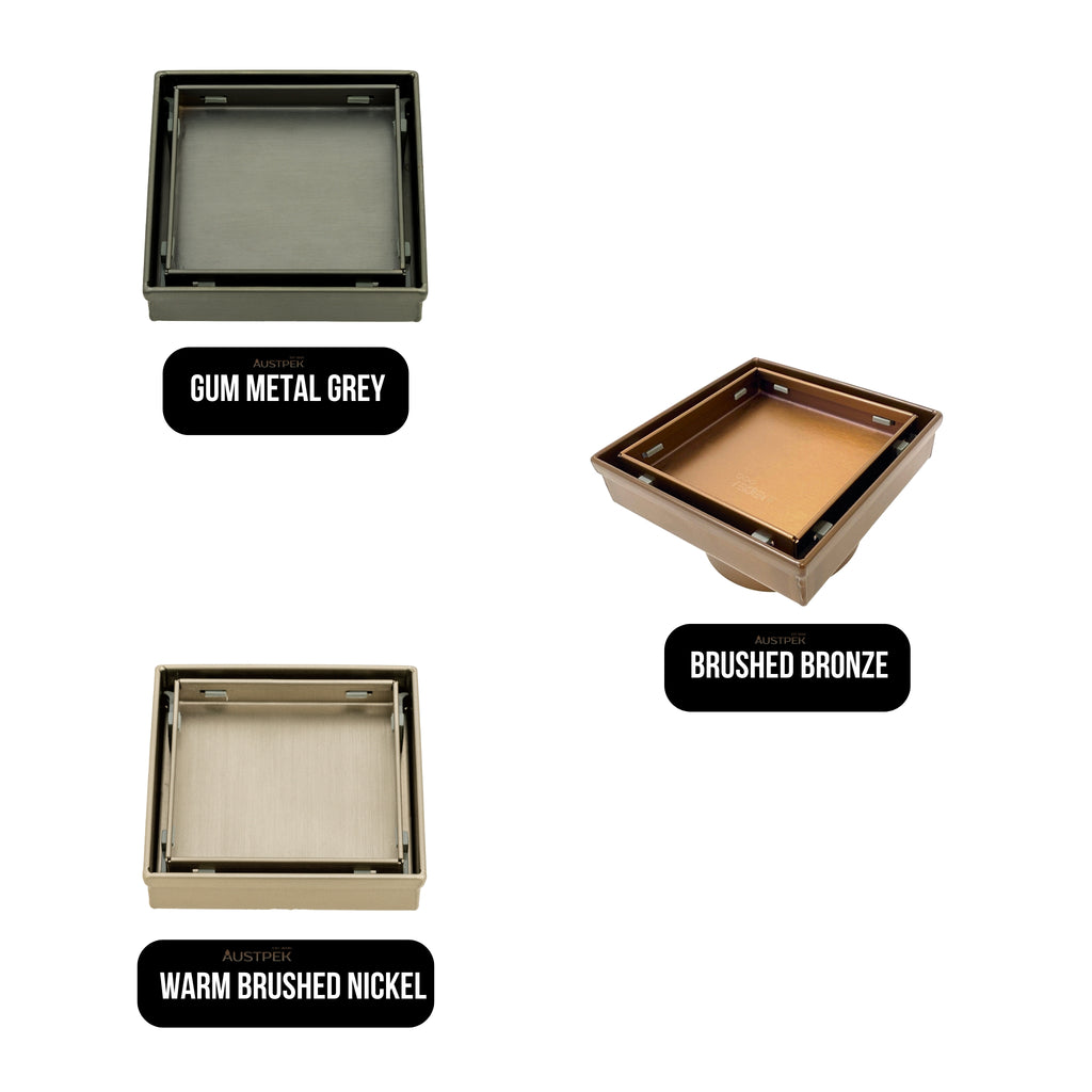 The Radiant Heating Square Tile Insert Floor Grate Gun Metal Grey 100mm is made from premium 316 grade stainless steel, offering durability and corrosion resistance. Designed with a tile insert style, it allows tile or stone to be fitted seamlessly within the grate for a discreet and modern finish. The gun metal grey finish is achieved with a high-quality PVD coating, giving it a bold and contemporary look that complements modern bathroom designs. Backed by a 7-year warranty, this grate delivers long-lasting reliability with sleek style.