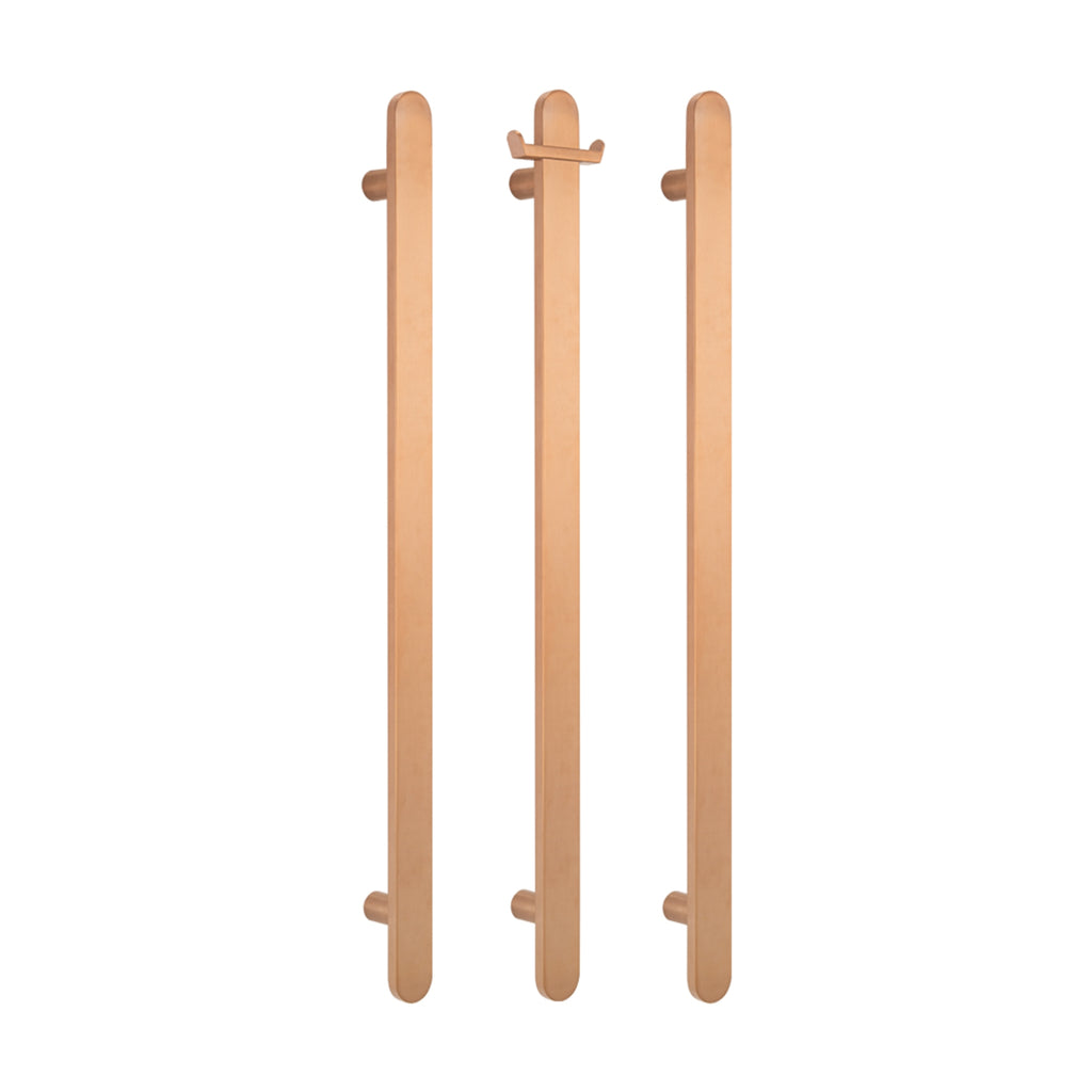 RADIANT HEATING VERTICAL FLAT BAR HEATED SINGLE TOWEL RAIL BRUSHED COPPER 930MM