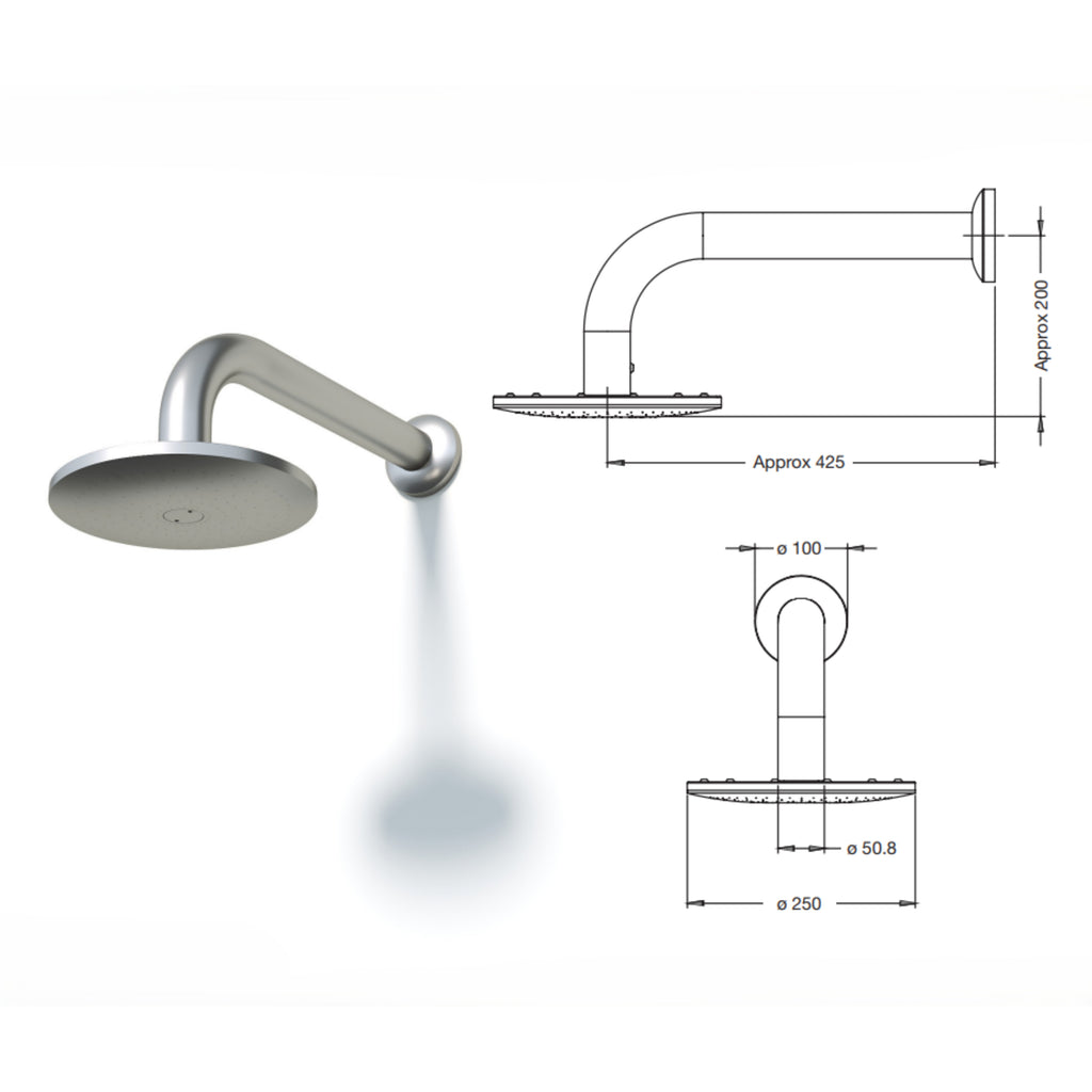 RAINWARE MARENGO OUTDOOR SHOWER ROSE AND ARM STAINLESS STEEL
