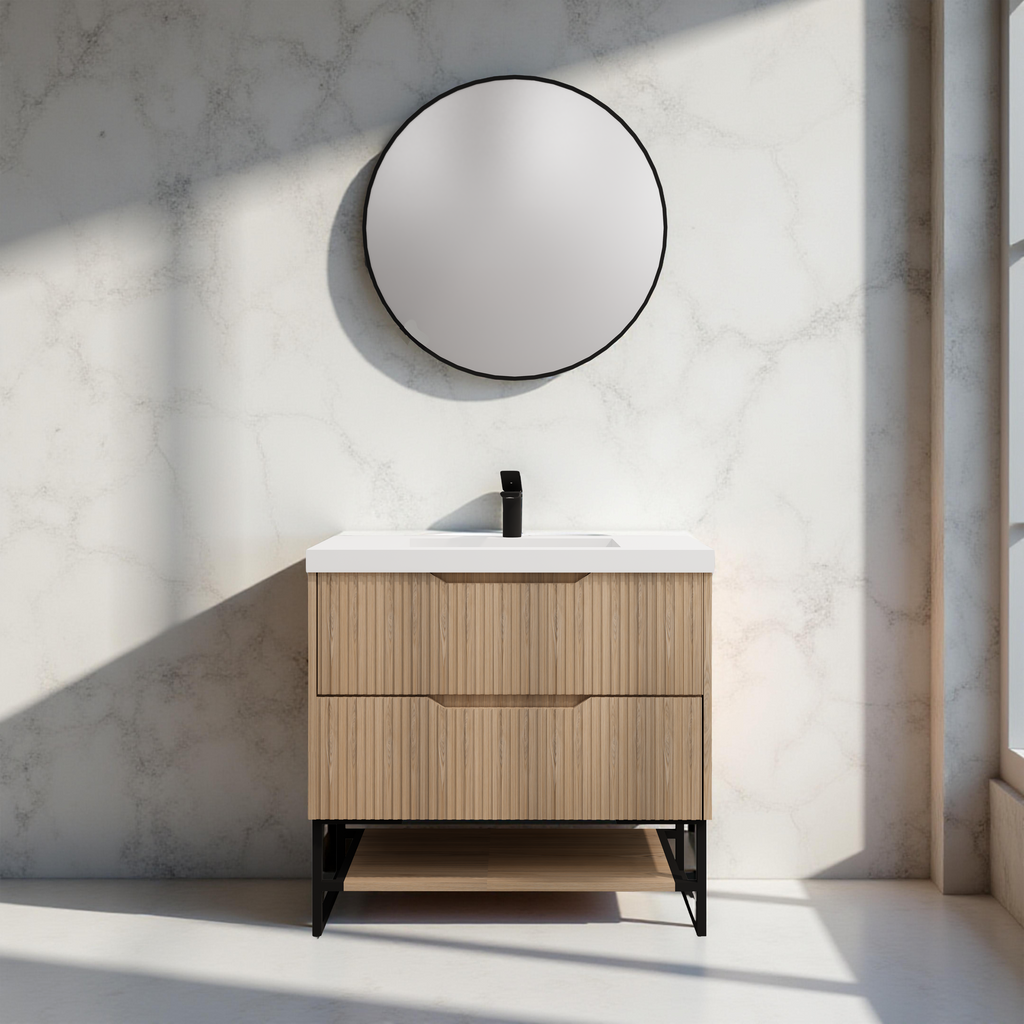 The Riva Bali American Oak 900mm Single Bowl Floor Standing Vanity is made from high-quality MR Melamine Board Panel with a durable PVC coating. Ideal for modern bathrooms, it provides generous storage space and a stylish design. This vanity comes with a 10-year warranty on replacement parts or the complete product, and a 1-year labor warranty, ensuring long-term satisfaction and reliability. Enhance your bathroom with this functional and elegant vanity.