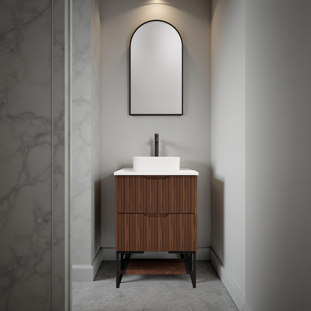 The Riva Bali Brown Oak 600mm Single Bowl Floor Standing Vanity combines elegance with durability. Crafted from MR Melamine Board Panel with PVC Coating, it promises longevity and easy maintenance. Featuring a 10-year warranty on replacement parts or the entire product, and a 1-year labour warranty, it ensures peace of mind and quality assurance. Ideal for modern bathrooms, its Brown Oak finish adds a touch of sophistication while offering ample storage and functional design.