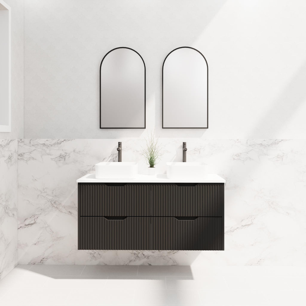 - Bali Matte Black Fluted Panel Durable Wall Hung Vanity