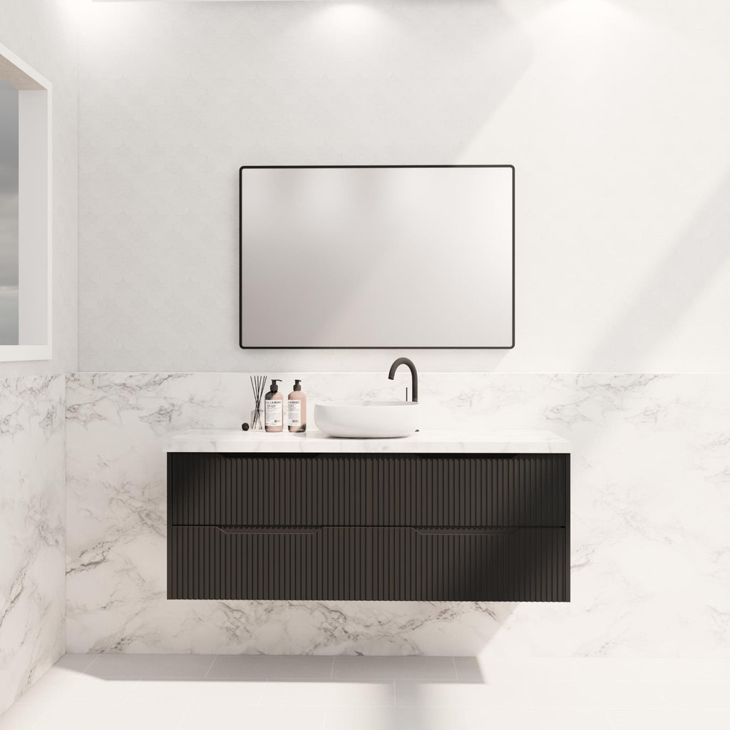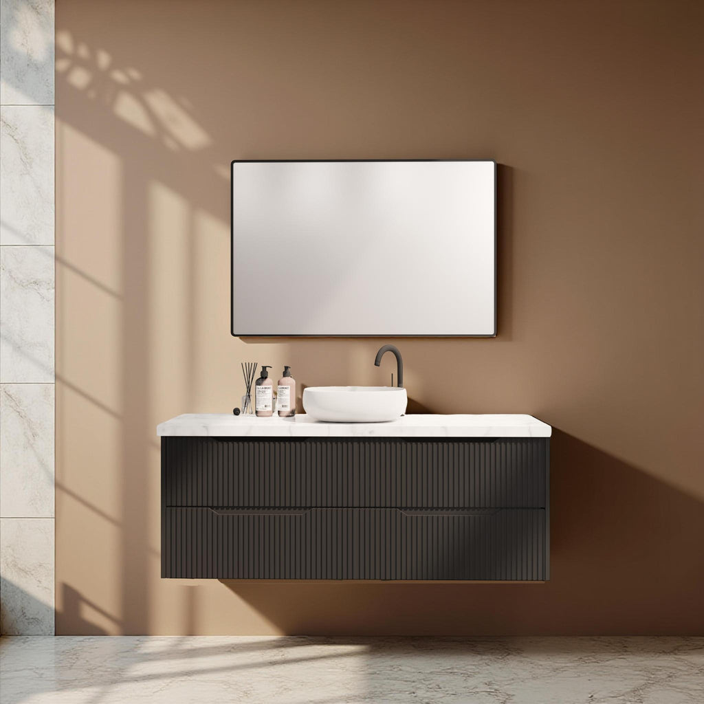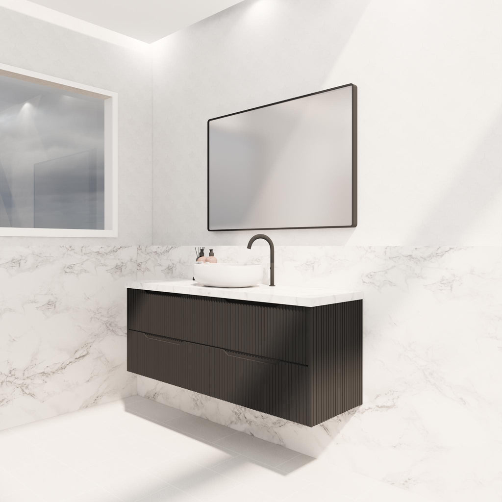 - Bali Matte Black Fluted Panel Durable Wall Hung Vanity