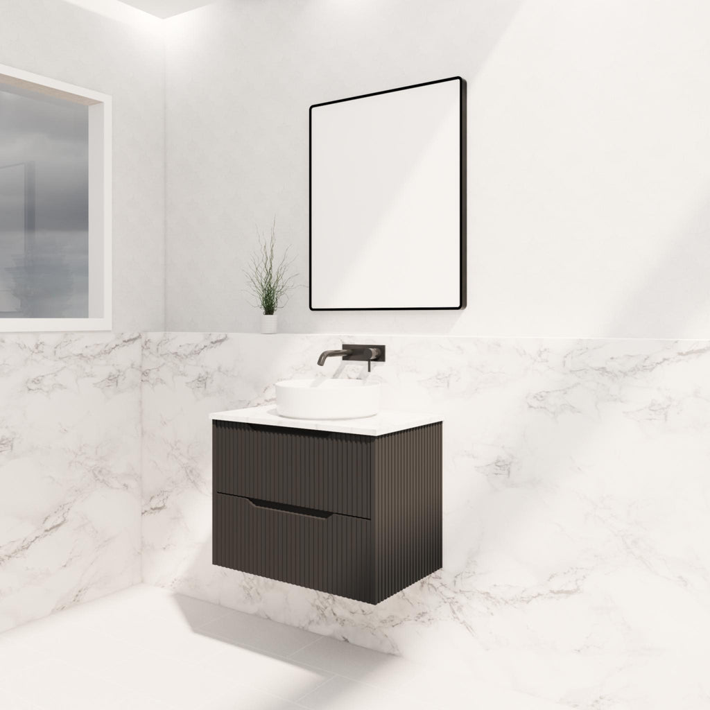 - Bali Matte Black Fluted Panel Durable Wall Hung Vanity
