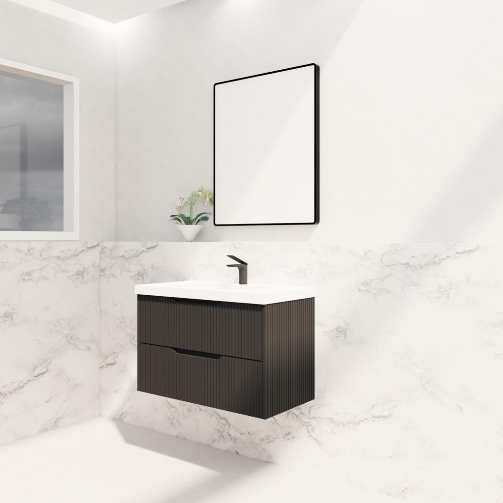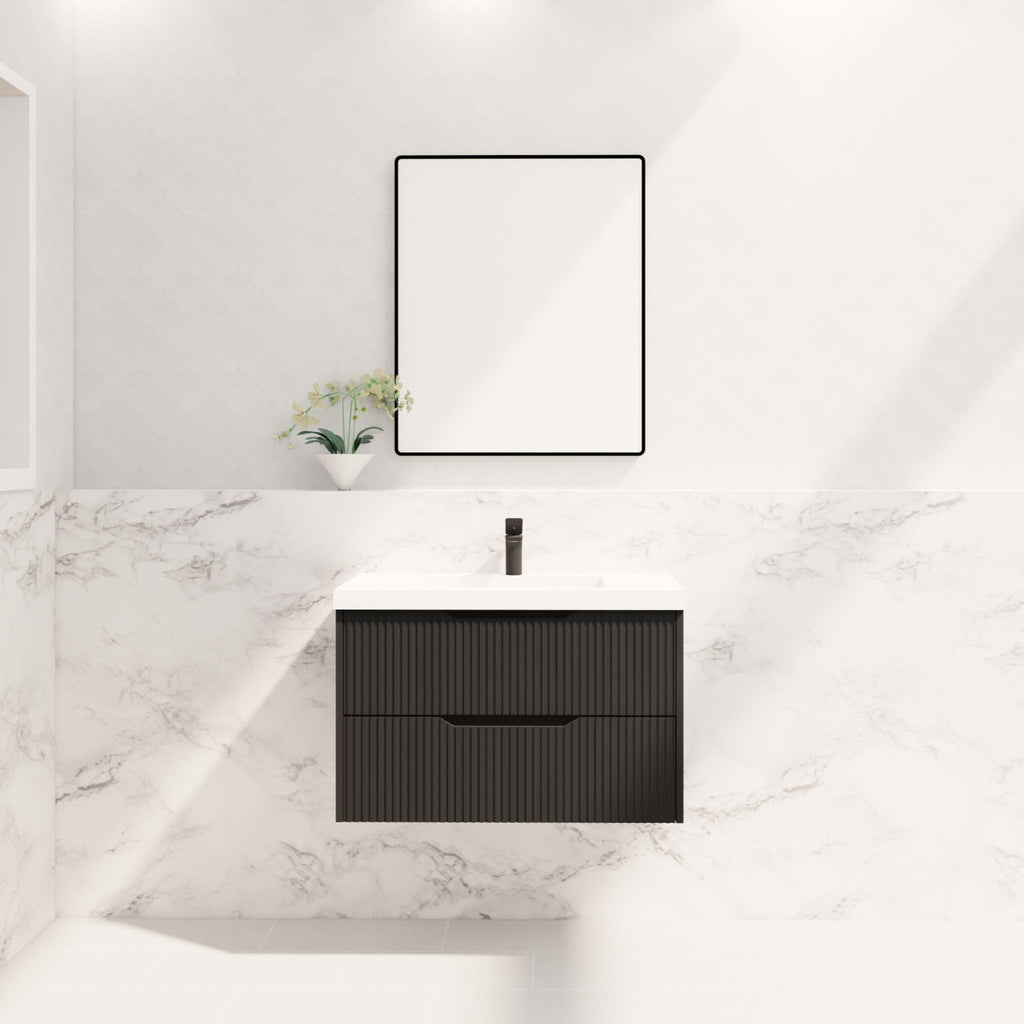 - Bali Matte Black Fluted Panel Durable Wall Hung Vanity