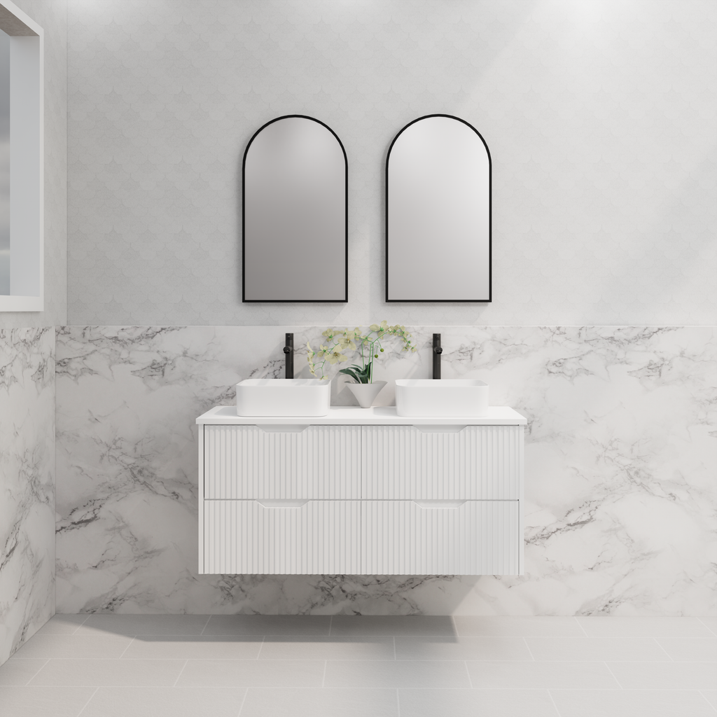 - Bali Matte White Fluted Panel Durable Wall Hung Vanity