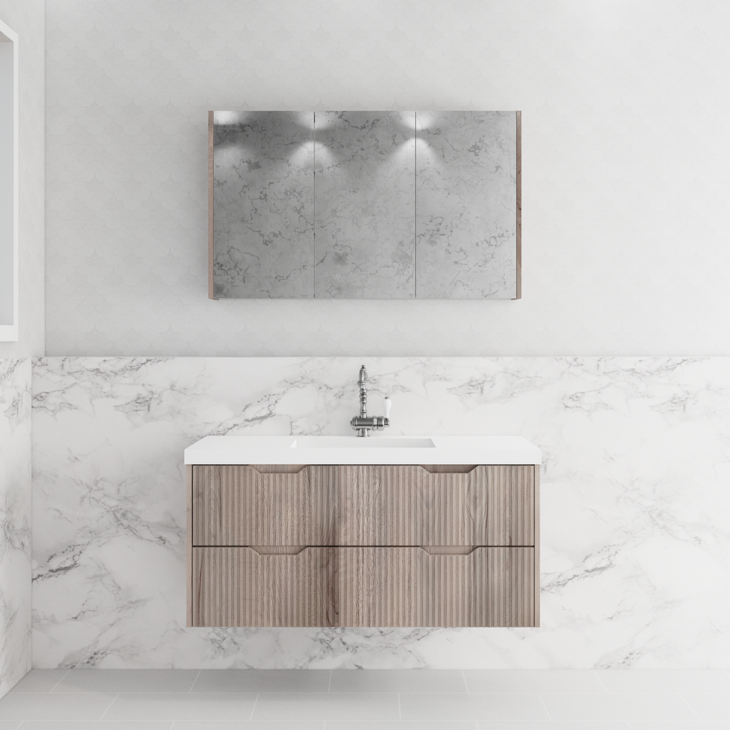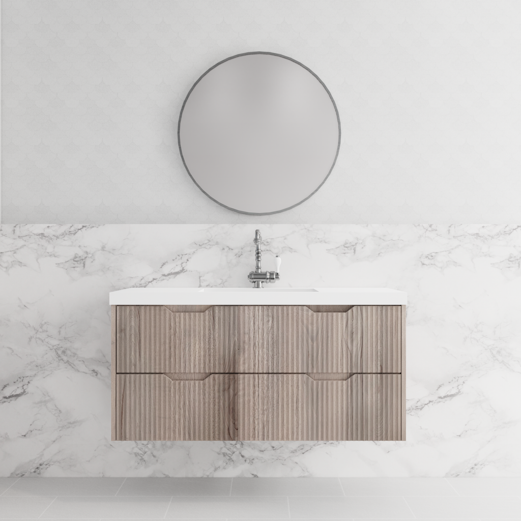 - Bali White Oak Fluted Panel Durable Wall Hung Vanity
