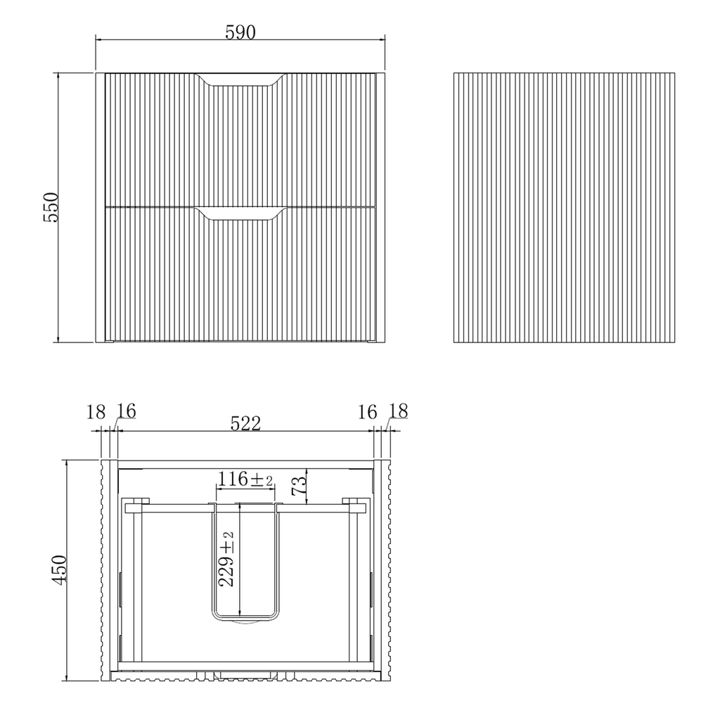 - Bali White Oak Fluted Panel Durable Wall Hung Vanity