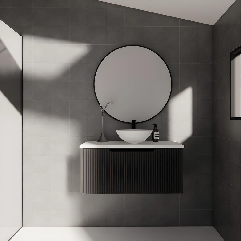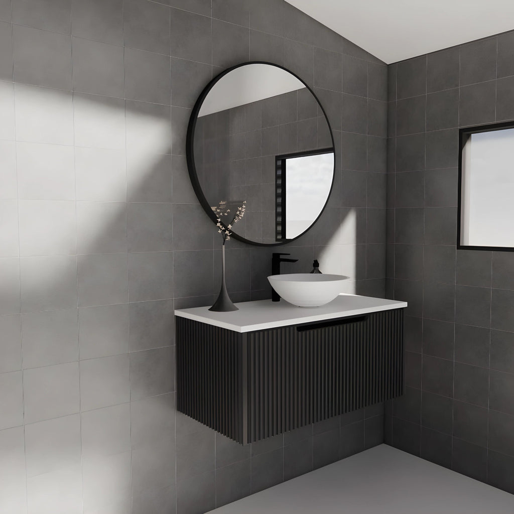 - Vienna Matte Black Fluted Panel Durable PVC Coating Vanity