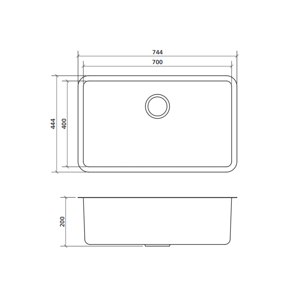 - Overall Sink Size: 744mm X 444mm X 200mm
