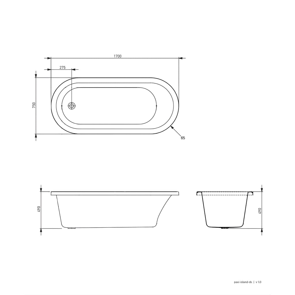 SEIMA LIMNI 135 ISLAND BATHTUB WITH OVERFLOW GLOSS WHITE 1700MM