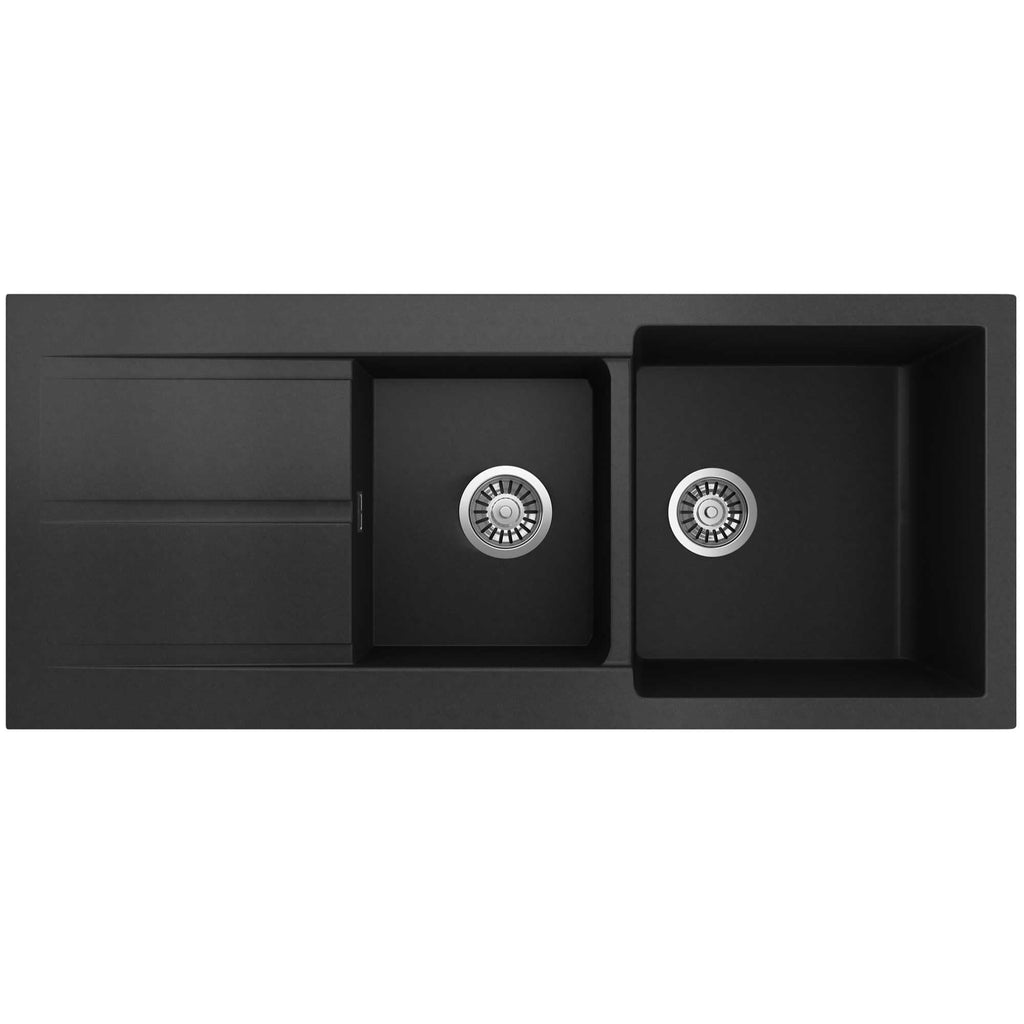 SEIMA OROS 1 & 3/4 DOUBLE BOWL KITCHEN SINK WITH DRAINER SILK MATTE BLACK 1160MM