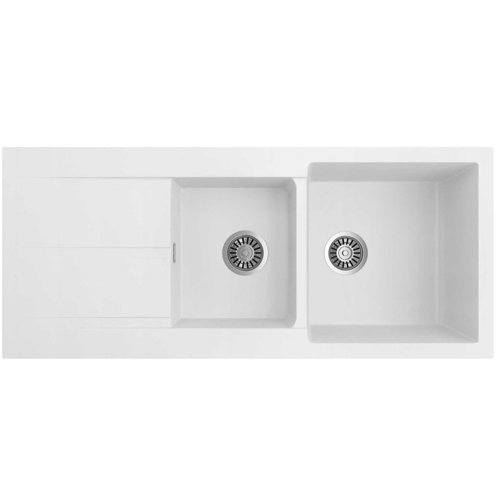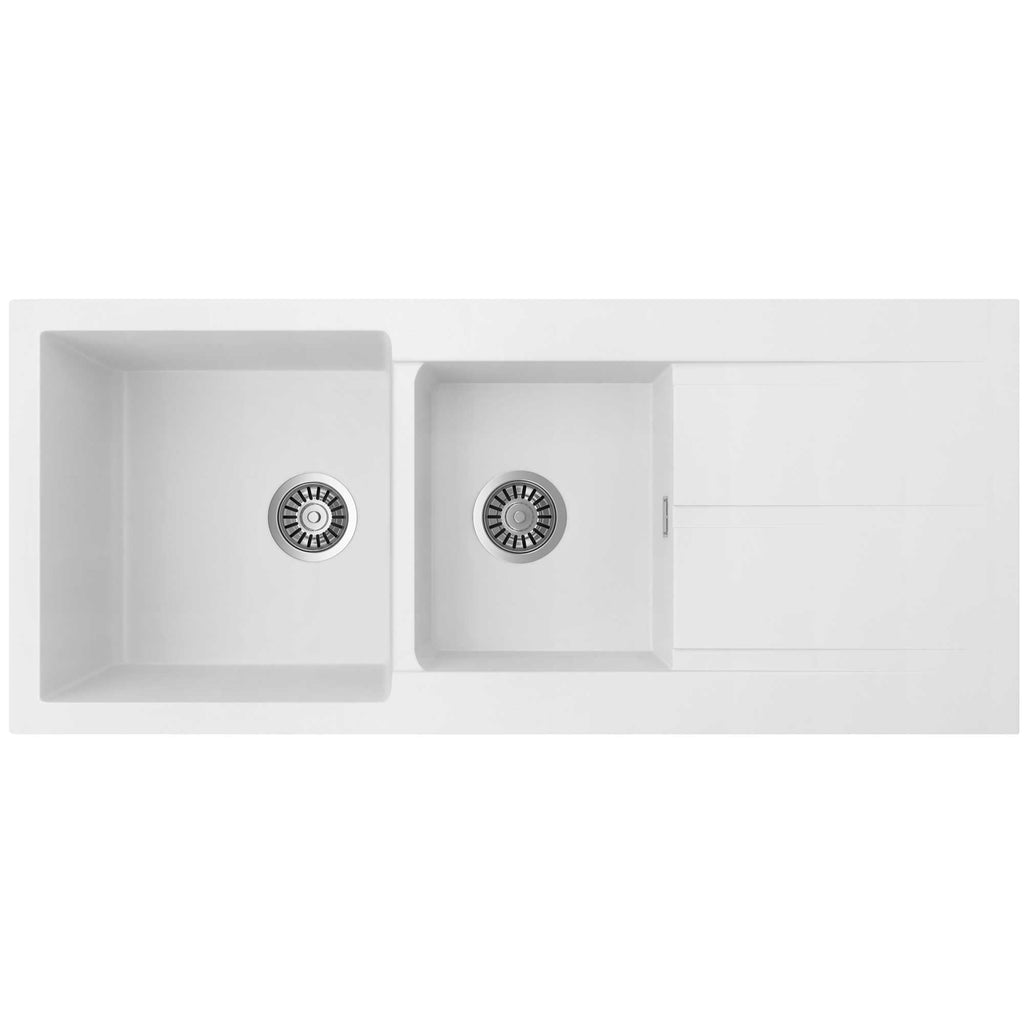 SEIMA OROS 1160 1 & 3/4 DOUBLE BOWL KITCHEN SINK WITH DRAINER SILK MATTE WHITE 1160MM