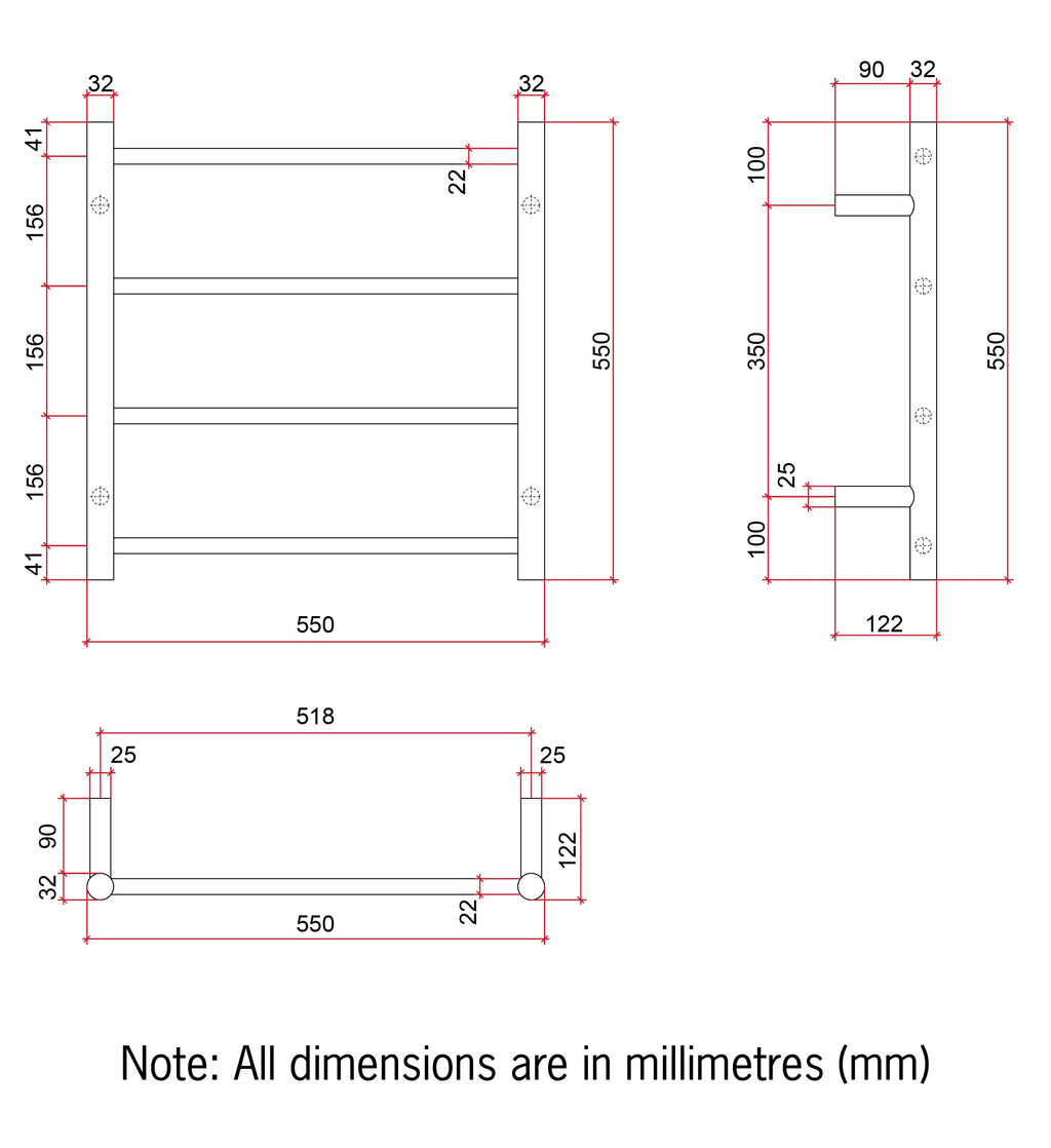 THERMOGROUP 4-BAR ROUND LADDER HEATED TOWEL RAIL BRUSHED STAINLESS STEEL 550MM